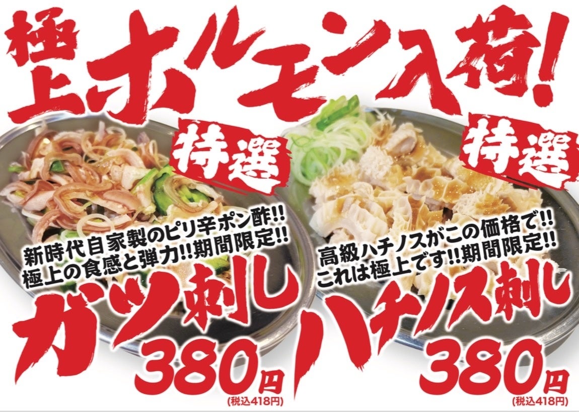 新時代は「揚げ皮串発祥」のお店。新時代の名物『伝串』は、特許庁から認められる唯一無二の大ヒット商品!そこで、並んででも食べたいというお客様が多く、連日行列ができる人気の居酒屋です。