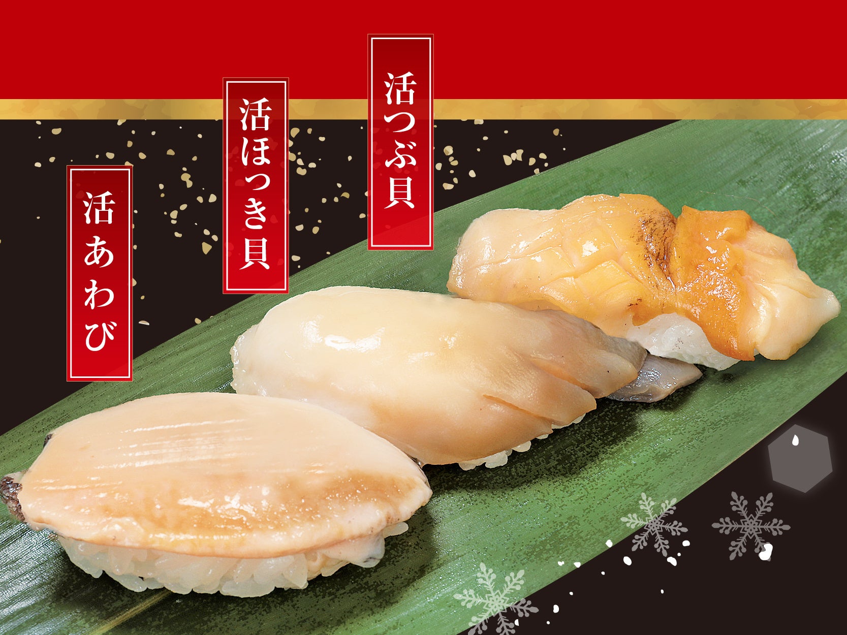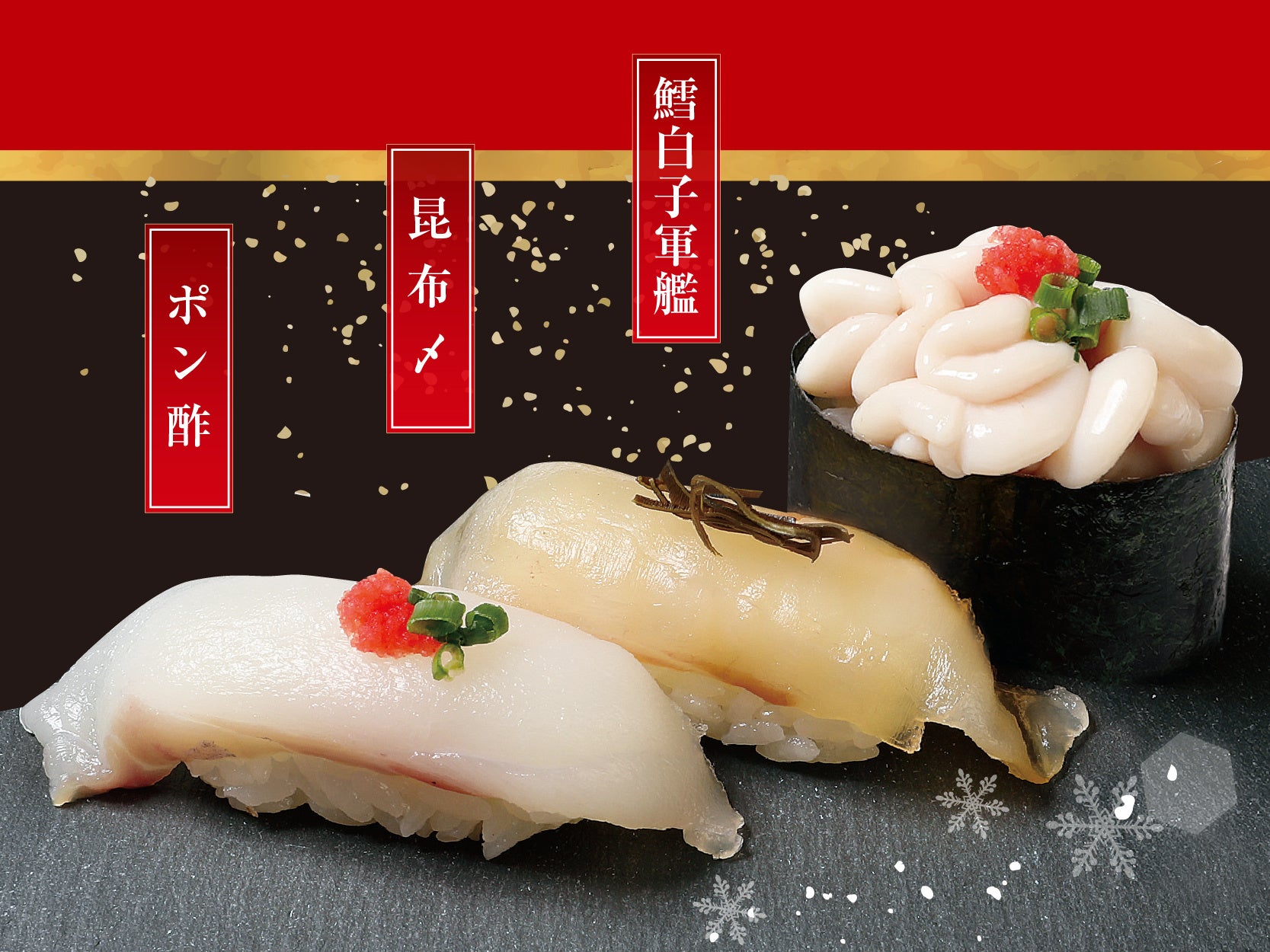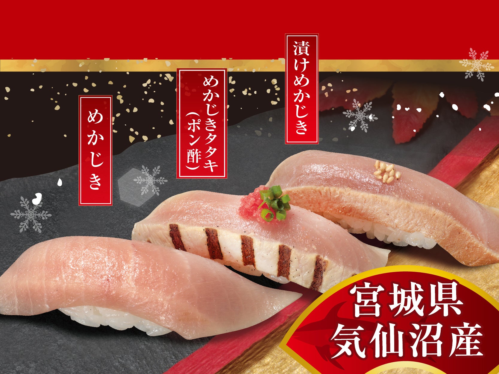 冬の訪れを感じさせる魚介類が続々入荷!うまい鮨勘では、回転寿司店舗・ゆとろぎ店舗、東北対面寿司店舗それぞれの業態で「冬の贅」と題した冬の味覚満載のメニューがスタート!