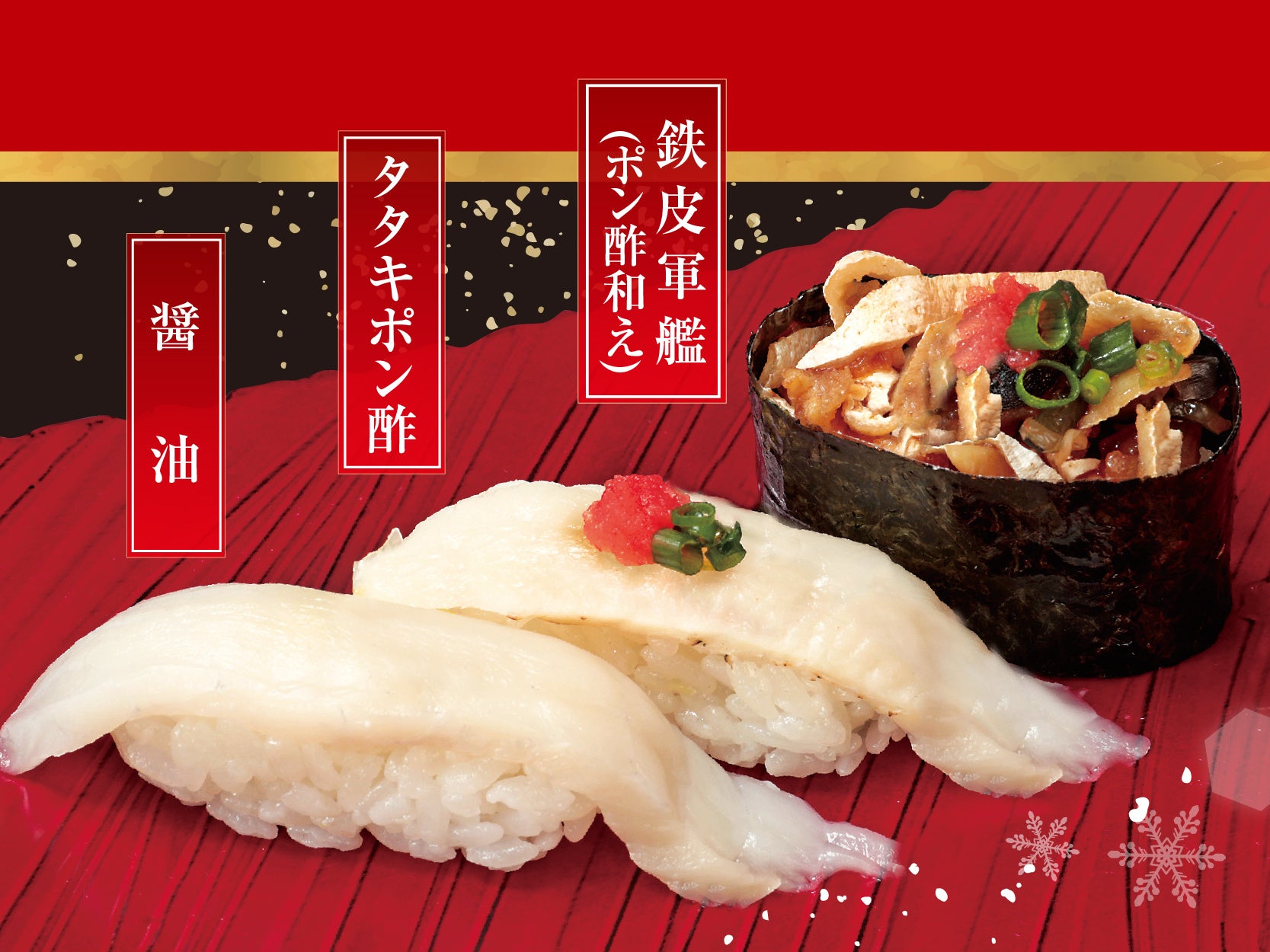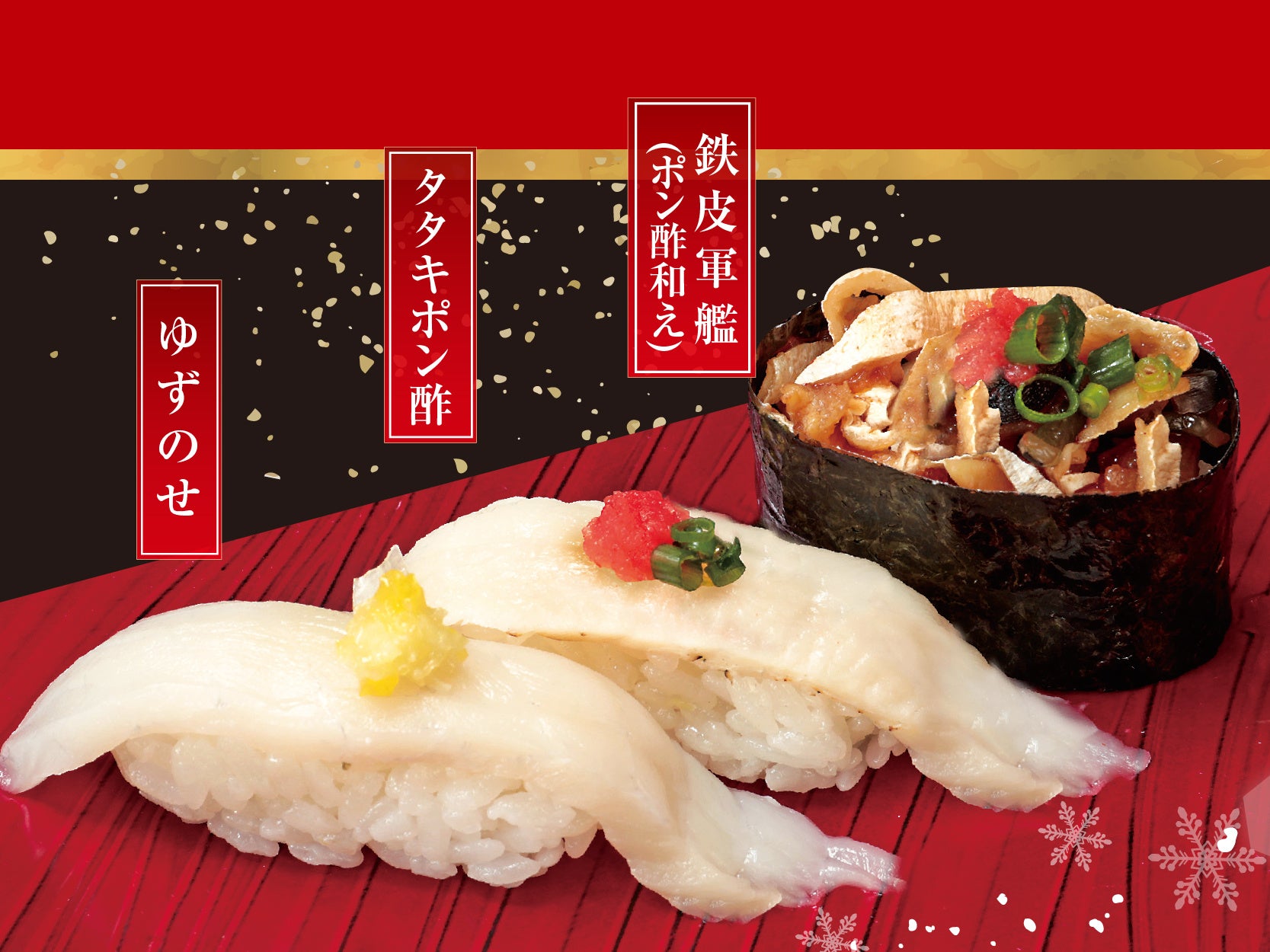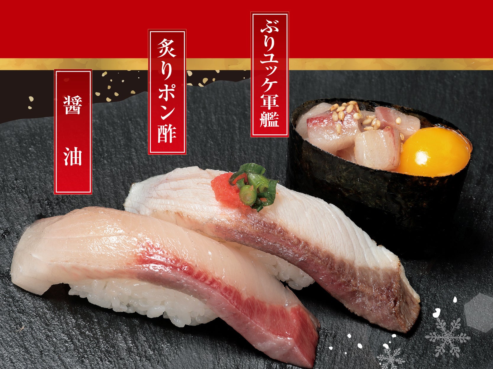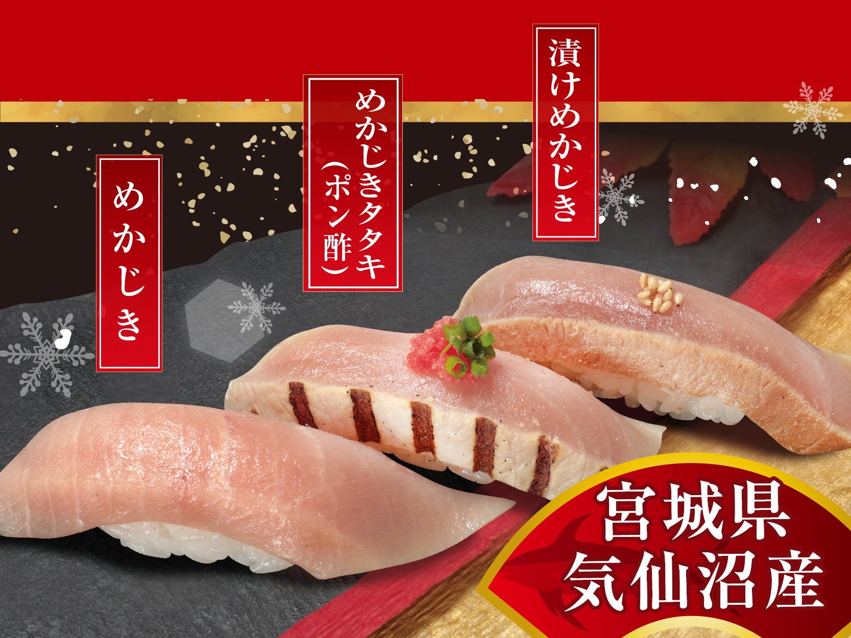冬の訪れを感じさせる魚介類が続々入荷!うまい鮨勘では、回転寿司店舗・ゆとろぎ店舗、東北対面寿司店舗それぞれの業態で「冬の贅」と題した冬の味覚満載のメニューがスタート!
