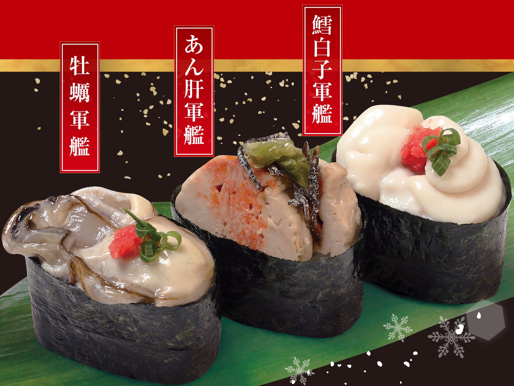 牡蠣軍艦、あん肝軍艦、鱈白子軍艦