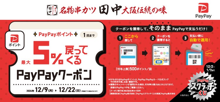 12月9日(月)~22日(日)の期間はPayPay決済で最大5%ポイント還元!
