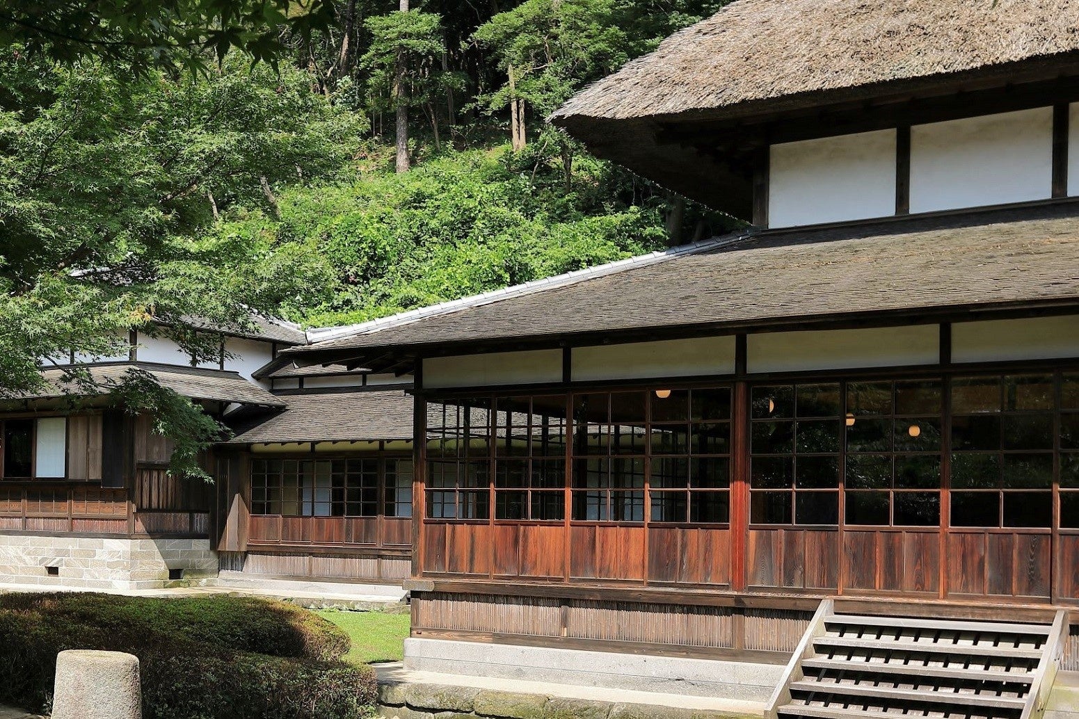 原三溪の故郷、岐阜県から移築した合掌造りの旧矢箆原家住宅では、