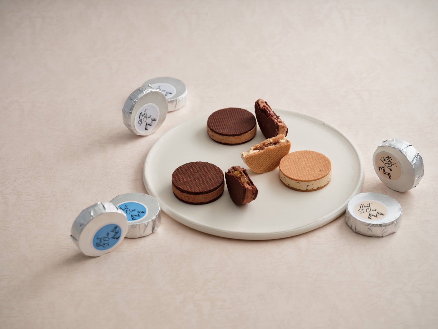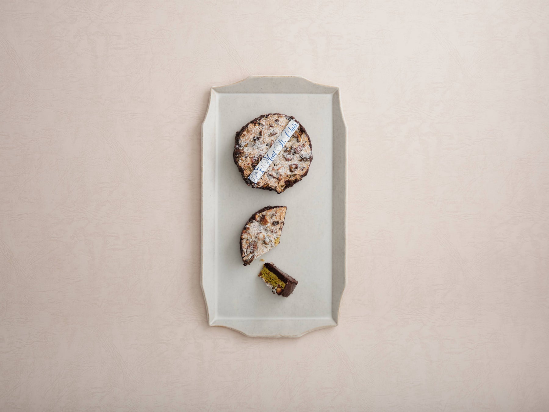 ホロホロとした食感の香ばしい焼きショコラサブレとふんわりさっくりとしたピスタチオのダックワーズでピスタチオのバタークリームをサンド。クリームには2年に1度しか収穫されない希少なイタリア・ブロンテ産のピスタチオを使用しました。