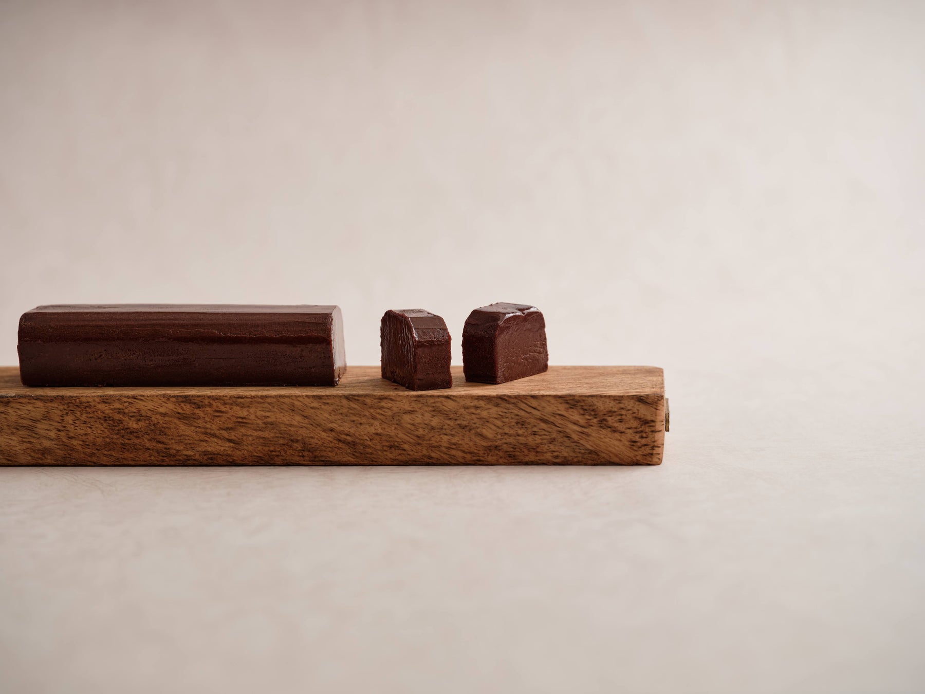 モンサンクレールで約15年間守り続けてきた伝統的なレシピ。ガーナ産のハイカカオを使用し、赤ワインやバター、卵を加え、低温で湯煎焼きすることで、酸味の少ない濃厚な味わいを実現。じっくりと舌の上でとろけるような口どけが特徴。生チョコやボンボンショコラのような速い口溶けとは異なり、豊かな余韻を感じながら、ゆっくりとお楽しみいただけます。