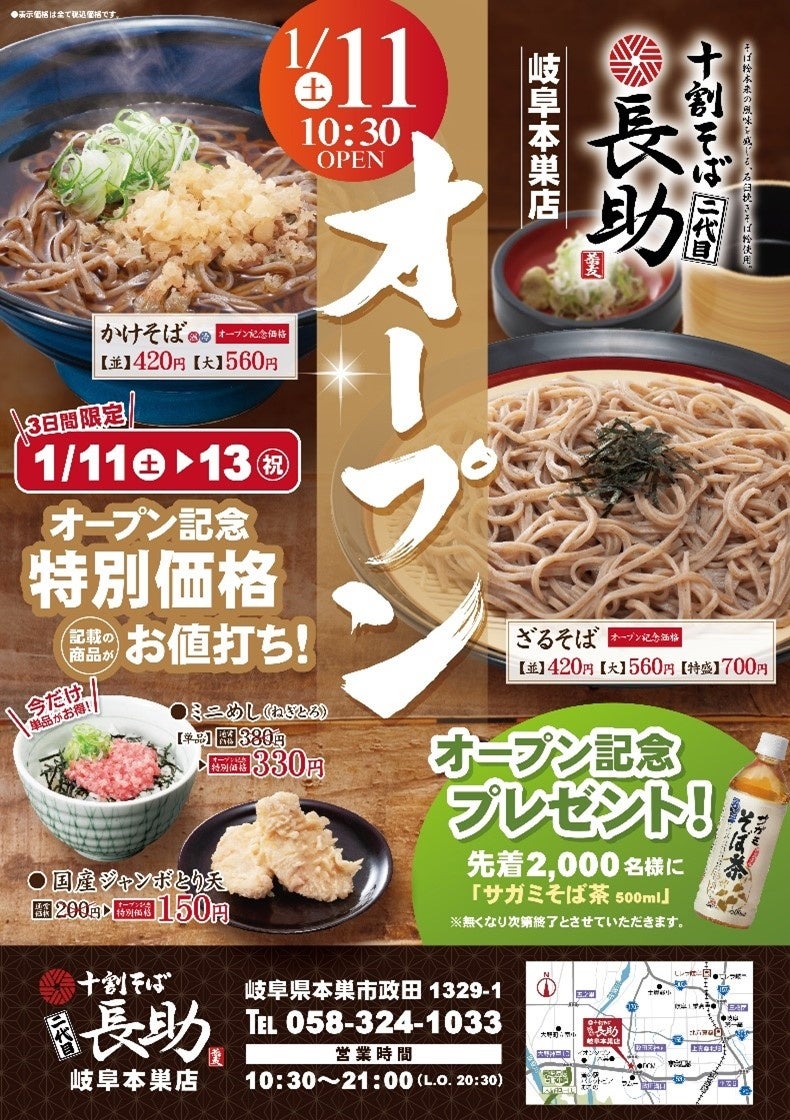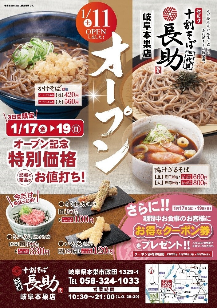 「十割そば 二代目長助 岐阜本巣店」2025年1月11日(土)グランドオープン!