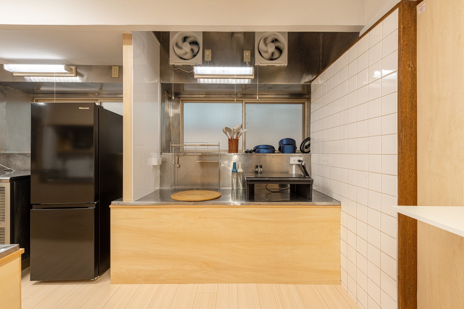 お部屋にキッチンがない水の間と竹の間、駿河の間をご利用のお客様も、共用の広いキッチンをお使いいただけるため、長期滞在にも最適です。