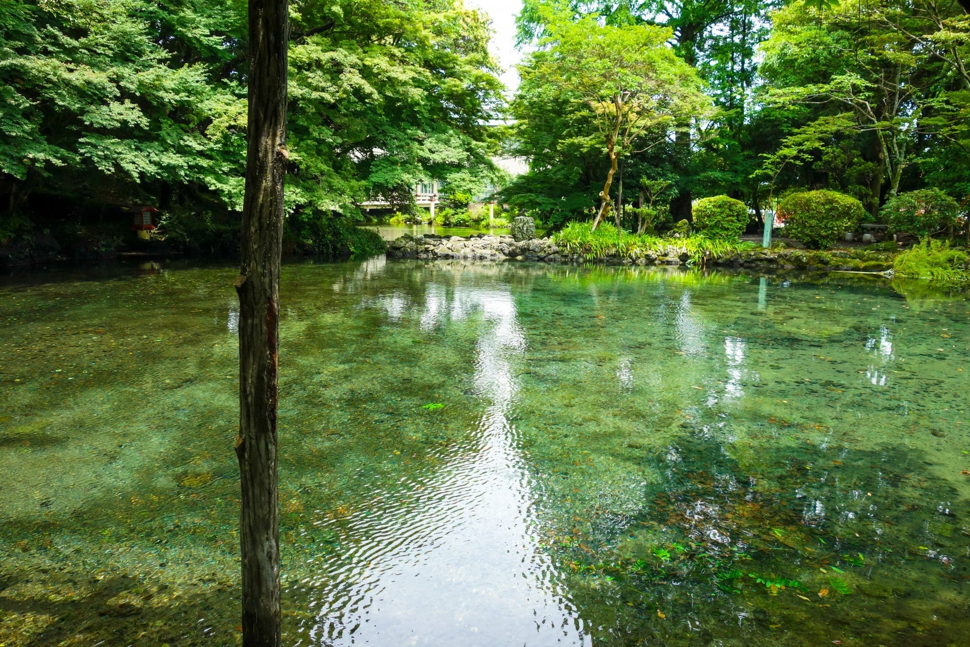 (国の)特別天然記念物に指定されている富士山の湧水から成る湧玉池がすぐ目の前に広がり、手で触れるほどの距離でその清らかさを感じられます。