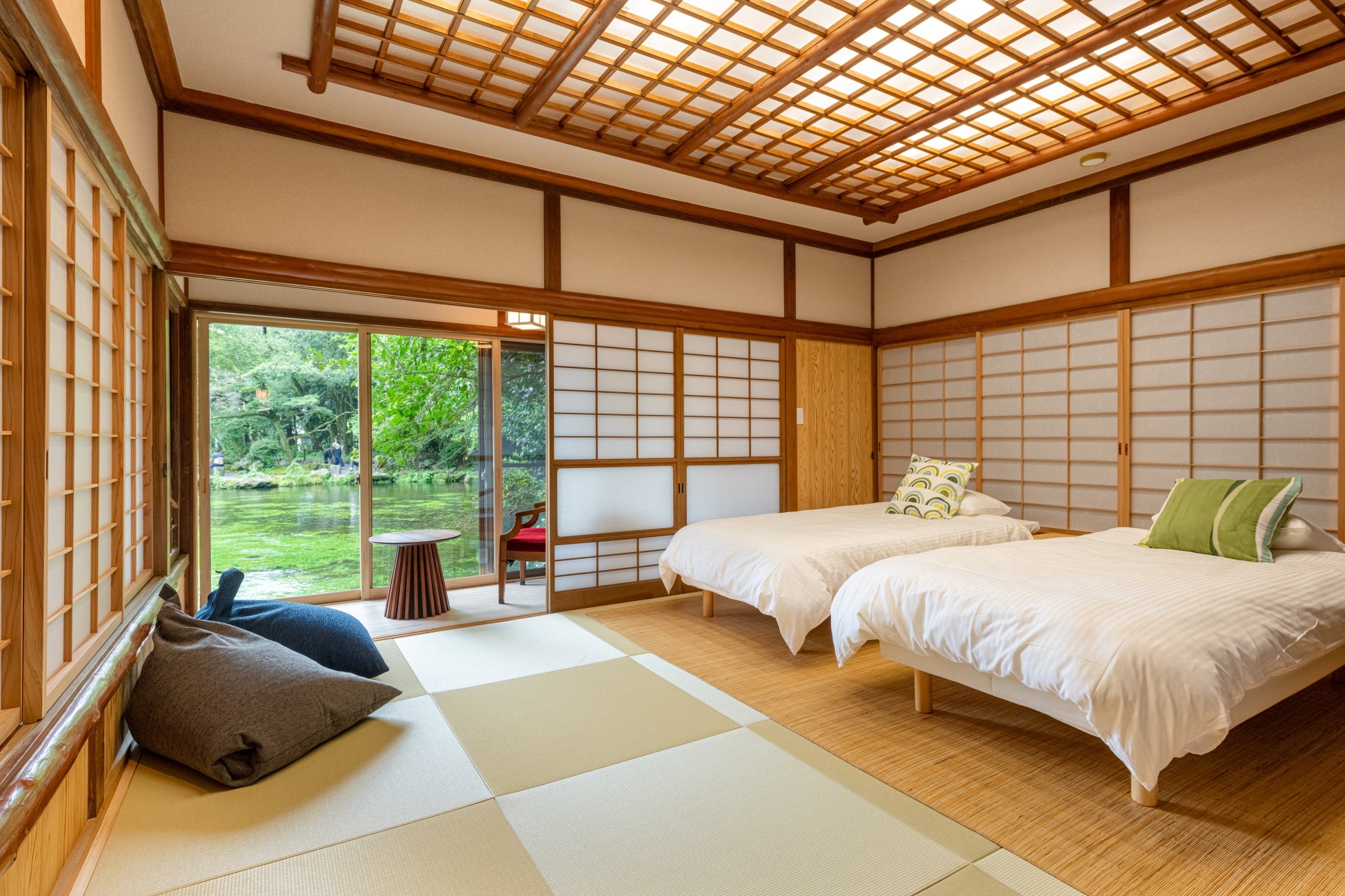 世界遺産である「富士山本宮浅間大社」や特別天然記念物「湧玉池」を臨める、日本の歴史と自然を最大限に感じられる全4室のみの宿泊施設です