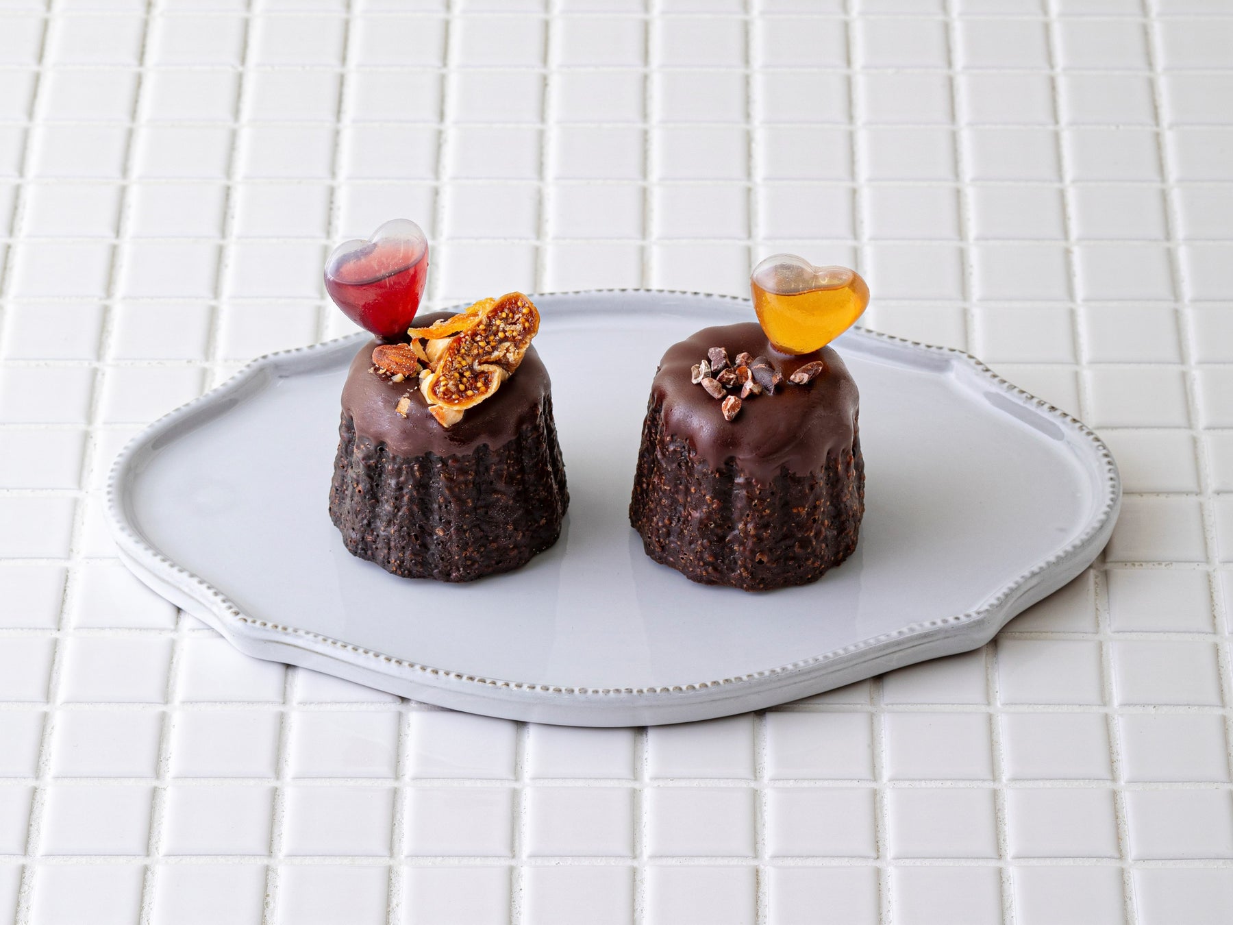 エキュートに初出店した明治元年創業の老舗洋菓子店からは、甘さ控えめでチョコの風味が活きた2種のケーキが登場。フランス産の高級チョコレートを贅沢に使った、しっとり濃厚なガトーショコラ。オレンジピールがのったビターチョココーティングと、フランボワーズがのったイチゴチョココーティングがアクセントになり、贅沢な味わいです。 ※販売期間:2/7~2/14