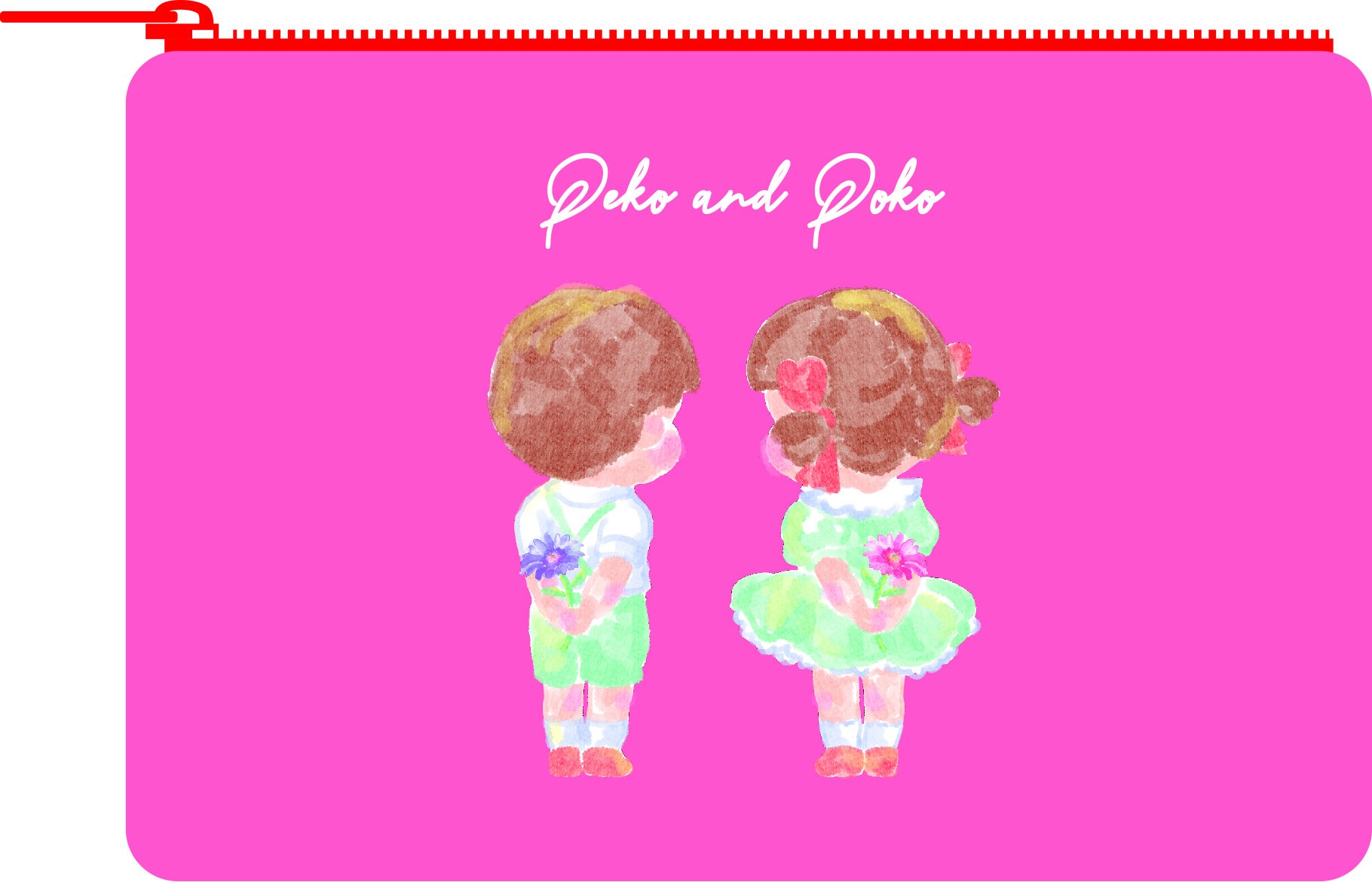 コインチョコが6枚入った、ペコちゃんとポコちゃんの後ろ姿が可愛いポーチです。手のひらサイズのポーチで、食べ終わった後は小銭や小物入れとしてお使いいただけます。