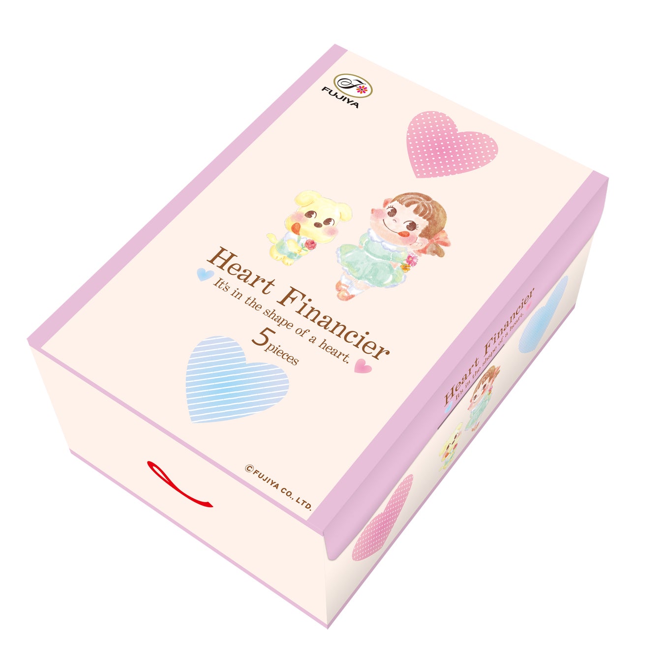 バレンタインギフトにぴったりなイラストが可愛いボックスにハート形のフィナンシェを詰め合わせました。バターとアーモンドの香りが引き立つ「プレーン」と、ベルギー産チョコレートを使用した「ショコラ」の2種をアソート。