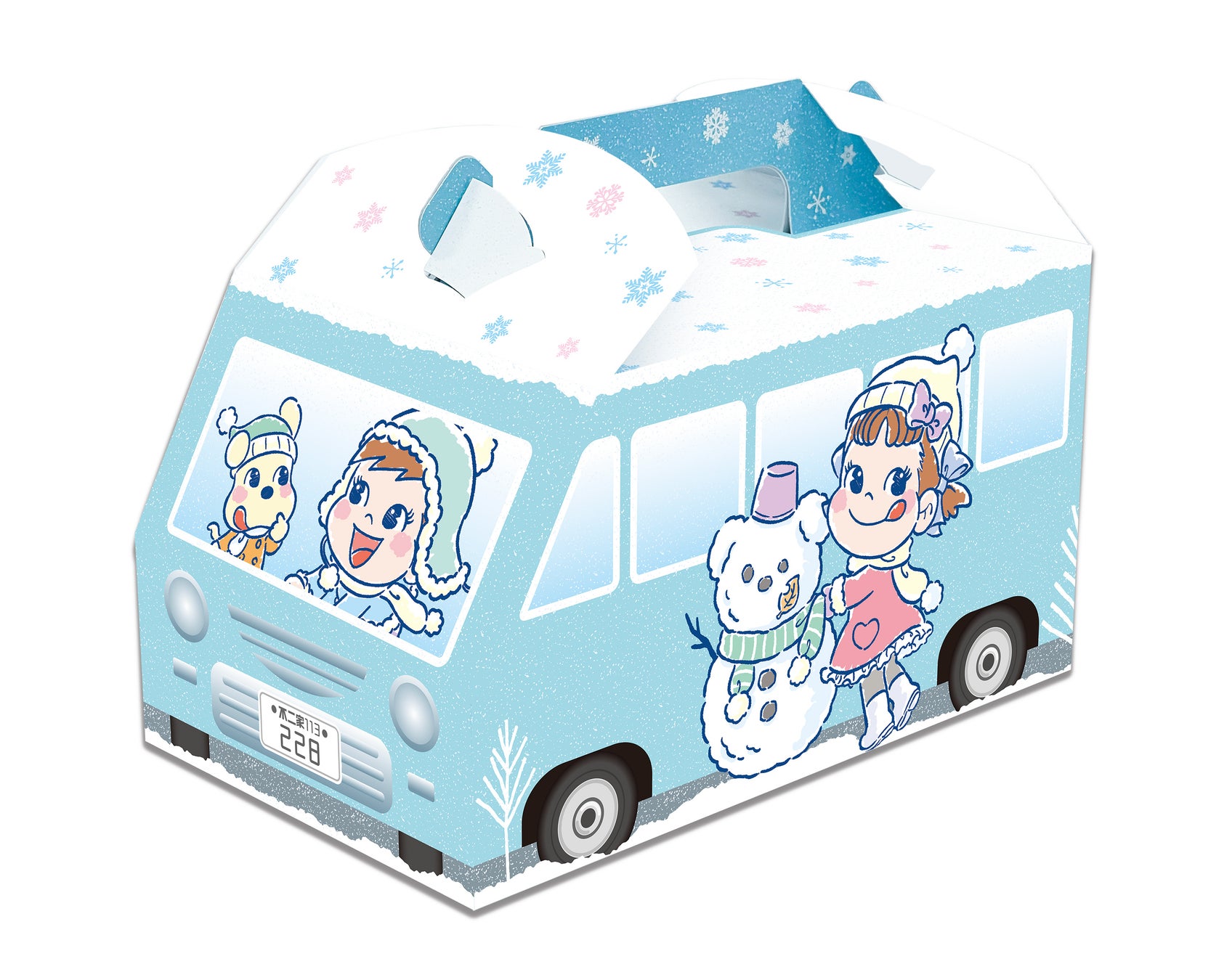 冬の装いのペコちゃんたちが可愛らしいバスデザインのボックスに、不二家洋菓子店の人気焼菓子を詰め合わせました。手土産にもぴったりな、もらってうれしい、食べておいしい商品です。