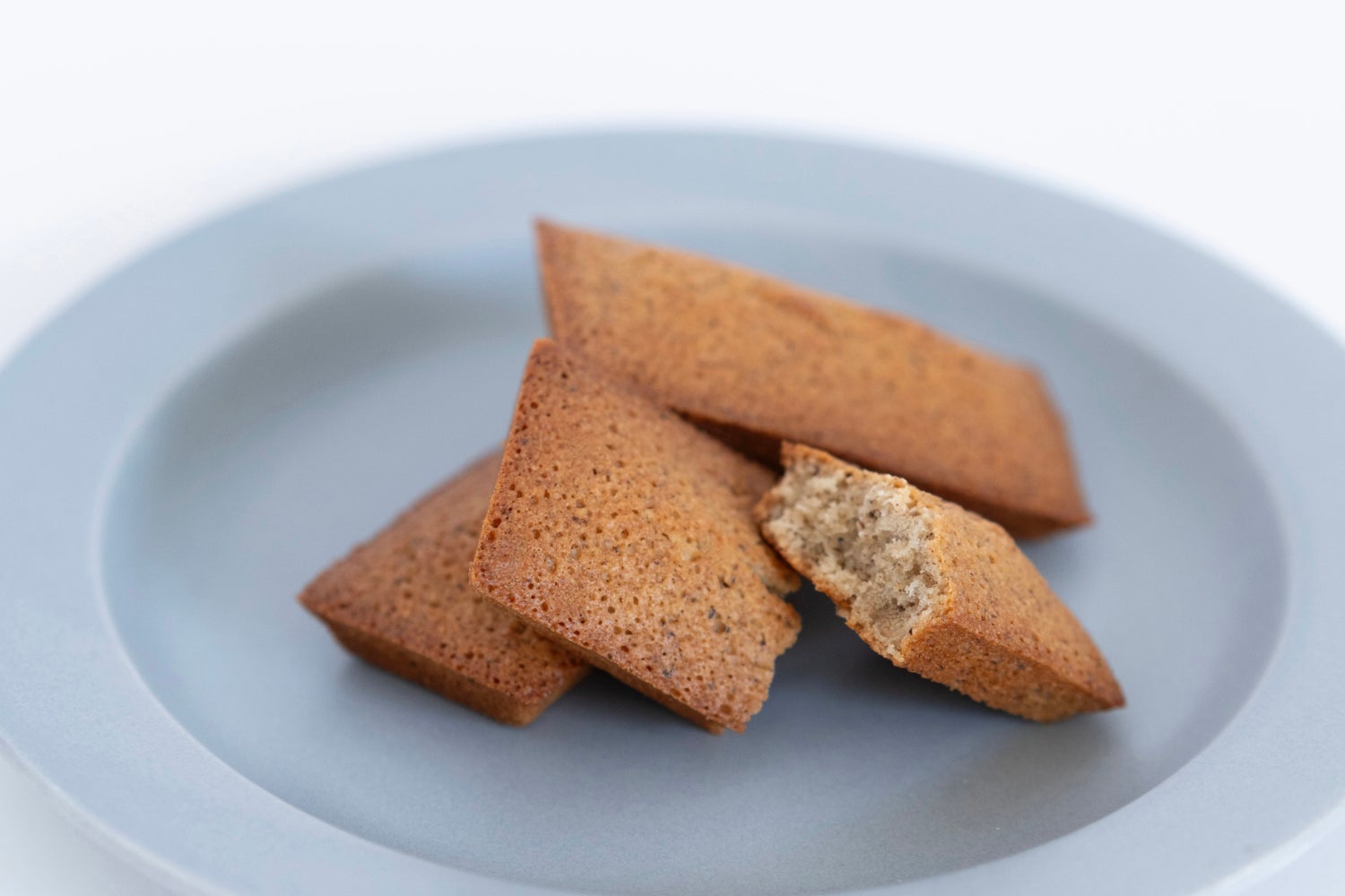 サクサク食感のバニラフィナンシェ。マダガスカル産プランフォリアバニラの甘い香りと、焦がしバターとアーモンドのコクが織りなす、贅沢な味わいをお楽しみください。