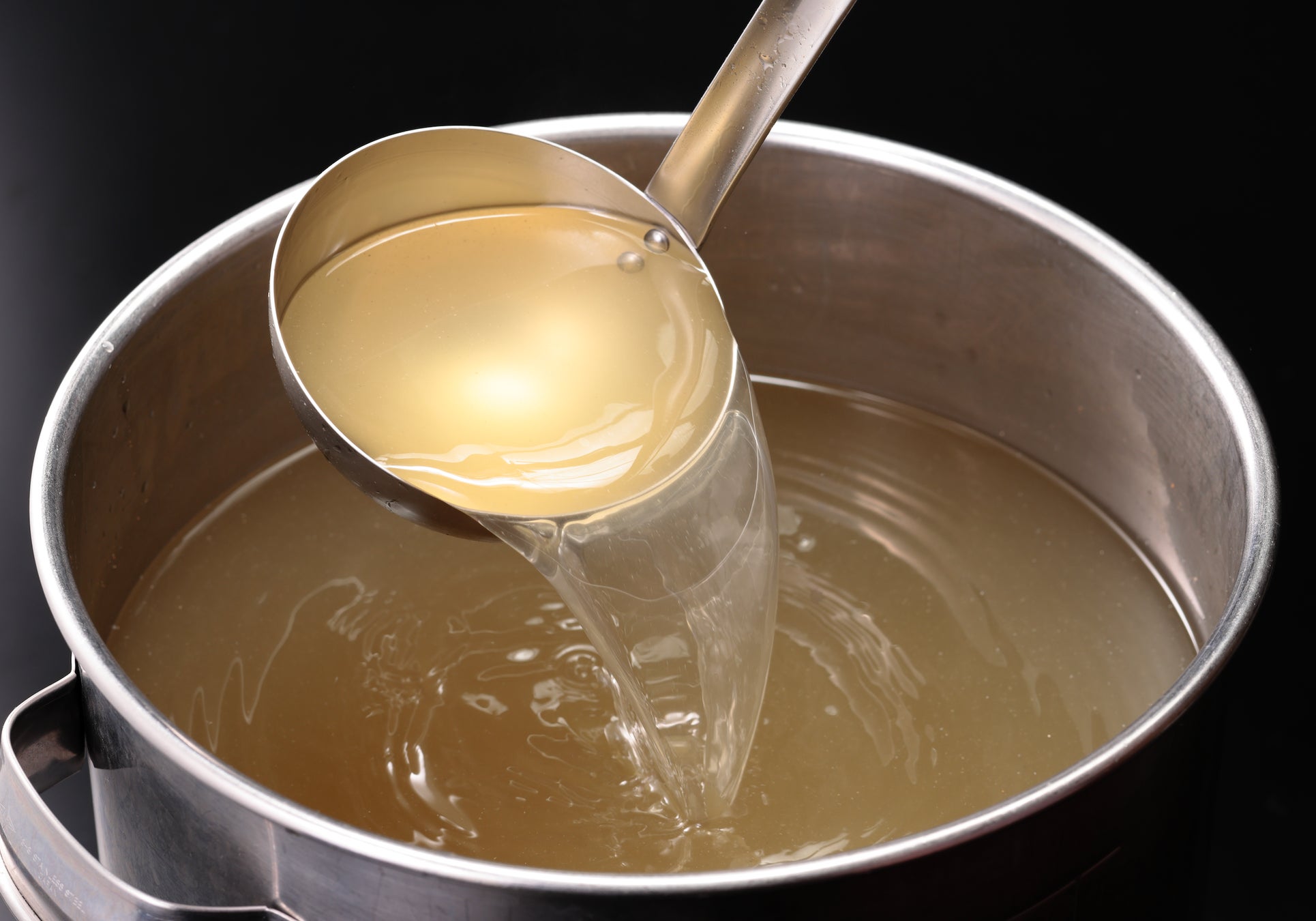 「金ことぶき。」の金色に輝くこだわりのスープは毎日店内で仕込んでいます。