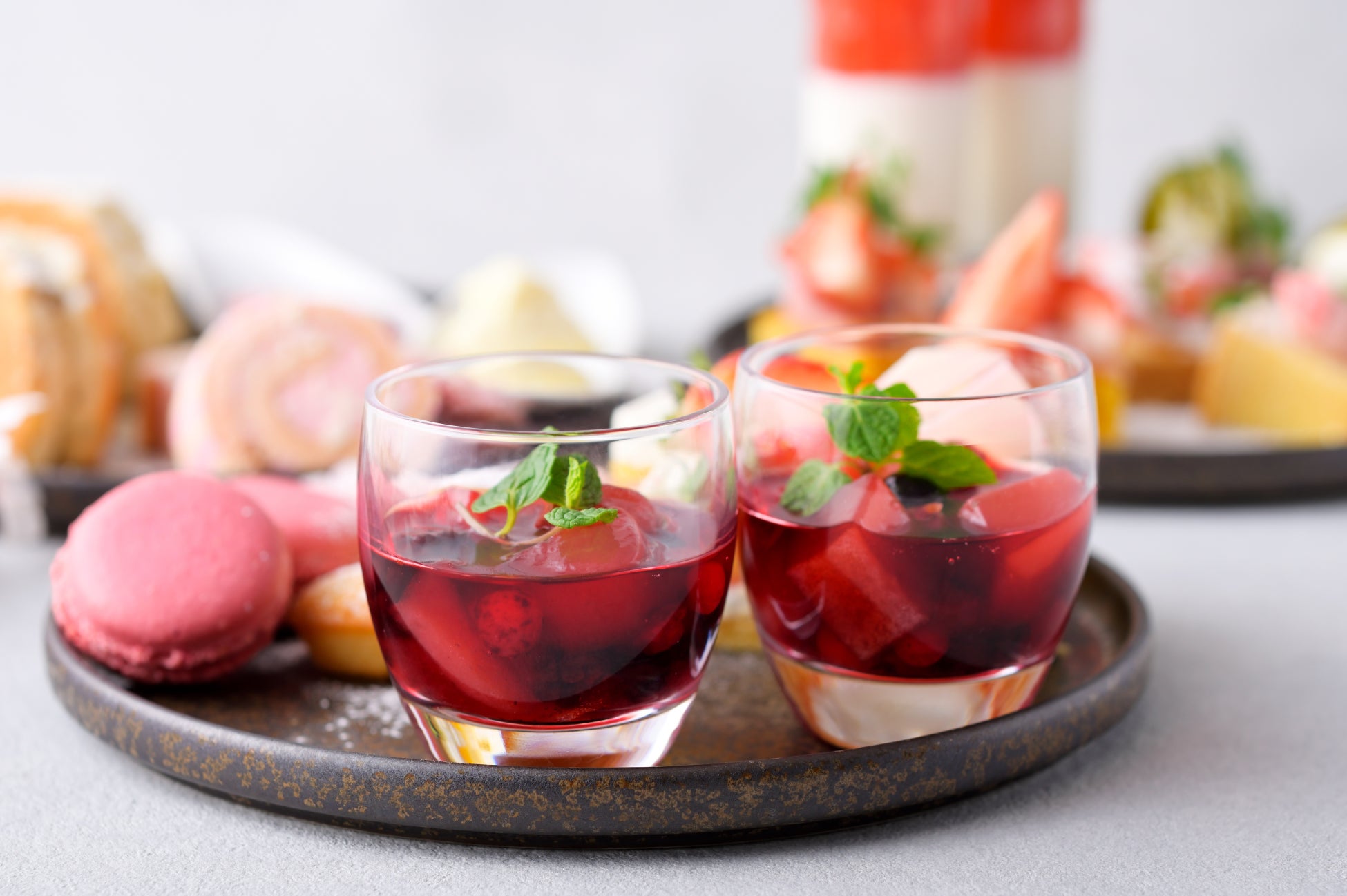 イタリア発祥のフルーツをふんだんに使ったデザート、マチェドニア。苺の甘酸っぱいジュレをベースに、ベリーを合わせた爽やかな味わいです。