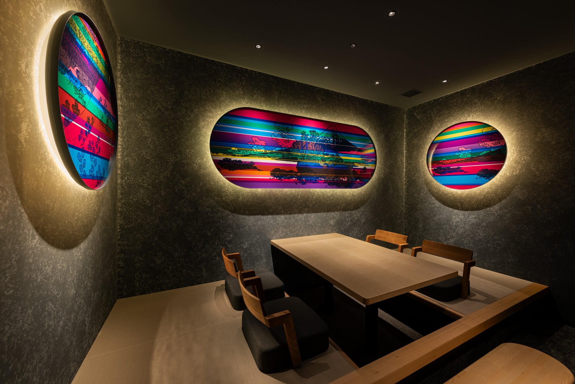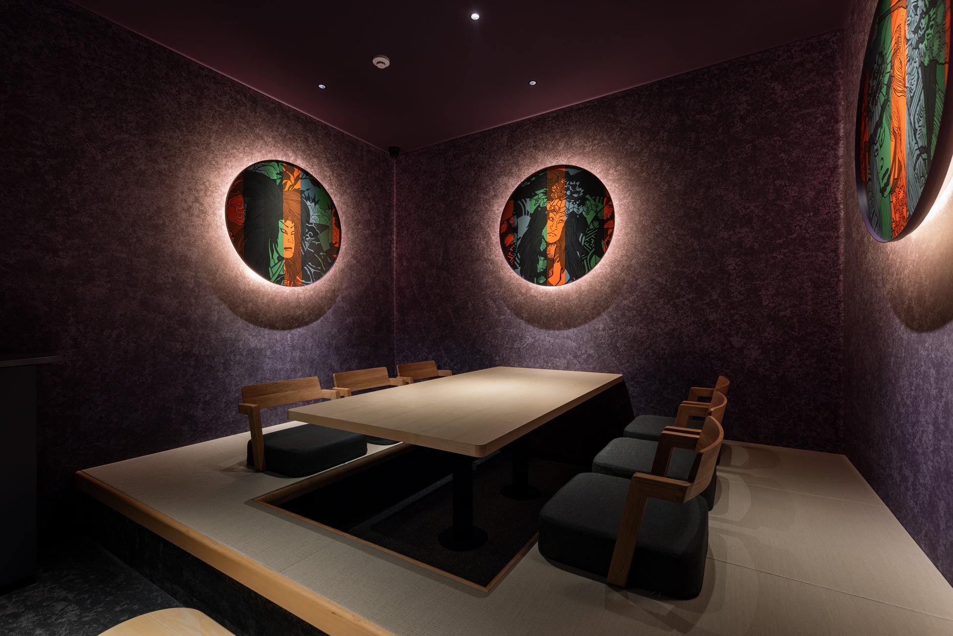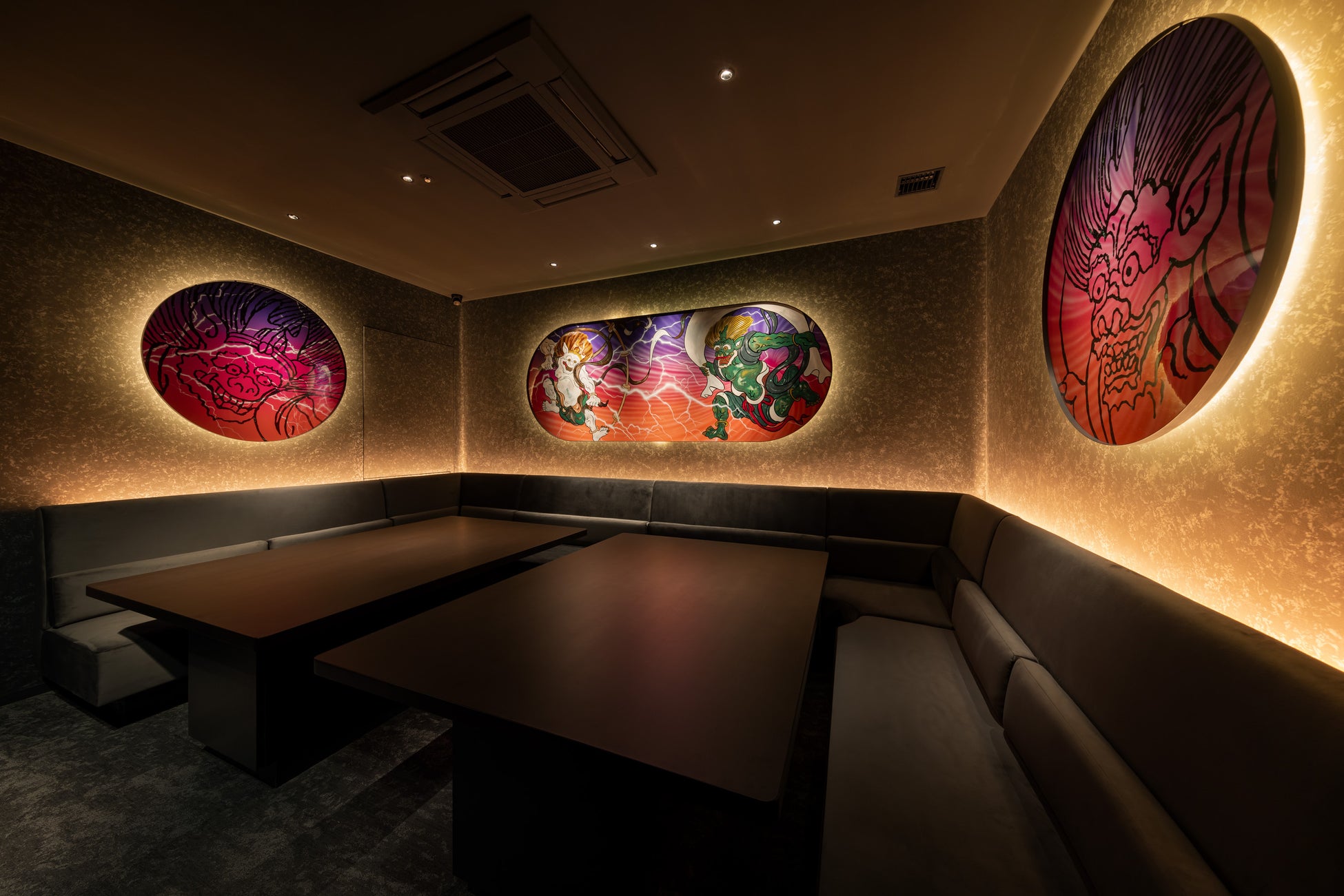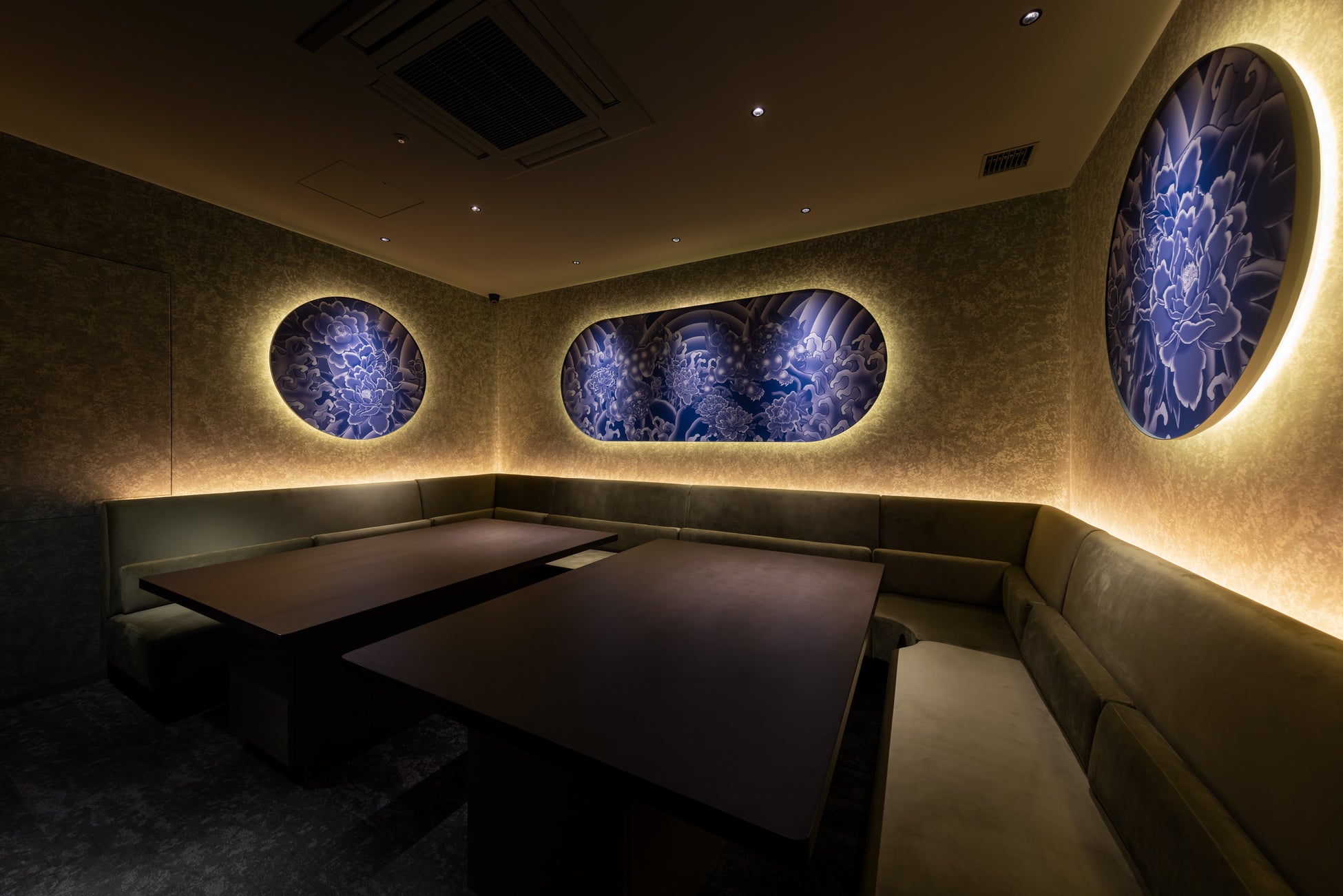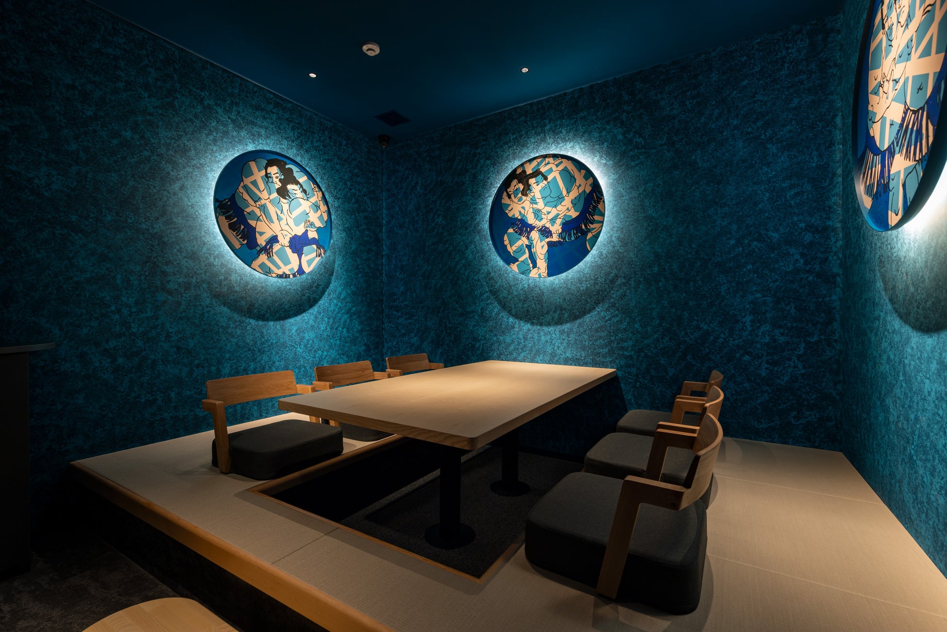 『HAMACOM』の大きな特徴でもある個室のデザインは、カスタムペインター倉科昌高氏による”和”をテーマにしたオリジナルのデザインで装飾されています。全11室の個室はそれぞれ異なる和が表現されており、日本らしさが詰まったフロアになっています。