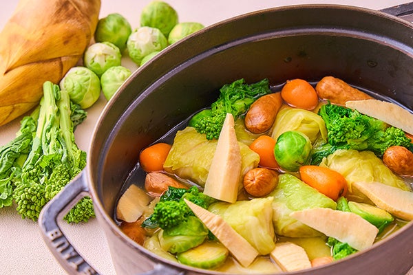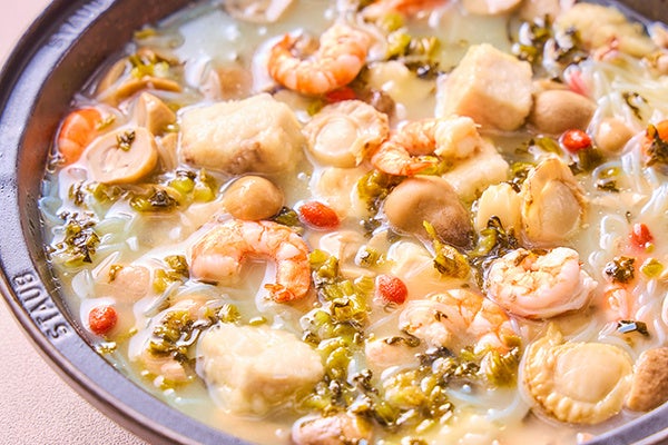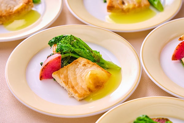 日本料理では、吟味して仕入れた旬の「鰆」にふき味噌を塗り、じっくりと焼き上げることで、魚の旨みと味噌の風味がしっかりと絡み合った深い味わいをお楽しみいただける「鰆のふき味噌焼き」をご用意しました。中国料理では、冬から春が旬の高菜漬けとともに魚介を煮込んだほのかな辛みが食欲をそそる一品をご提供します。