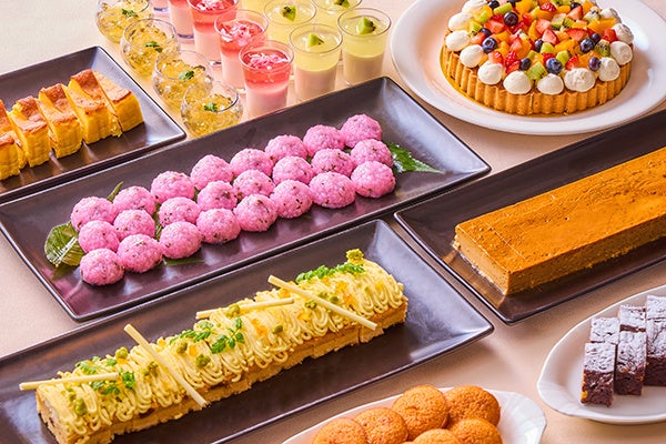 食べやすい大きさの一口「桜餅」や、ほのかに感じる桜風味の「杏仁豆腐」、季節のフルーツを使用した「タルト」、サッパリとした味わいが食事の締めくくりに最適な「日向夏とヨーグルトのヴェリーヌ」など、色とりどりの見た目も楽しいスイーツの数々をご堪能いただけます。
