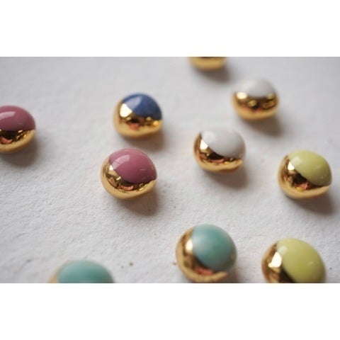 陶器のアクセサリーショップ。九谷焼の技法で粘土から手作りしているので同じデザインはなく唯一無二のアイテム。アクセントの金色と銀色は、本物のゴールドとプラチナを使用。陶器ならでは色合いが楽しい。