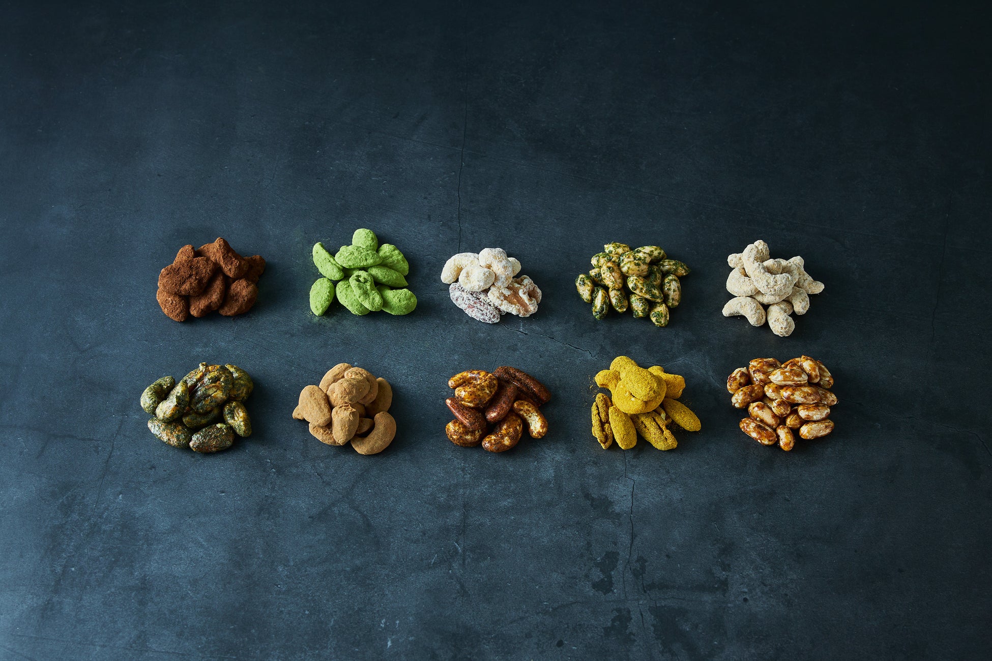 オーガニックナッツを使用したこだわりのフレーバーナッツを10種類以上ご用意しました。その場ですべてのフレーバーナッツをご試食していただけるので、お好きなものを納得してお選びいただけます。「おやつとしてはもちろん、お酒のおつまみとしても最高!」という声も多く、どのお酒にも合うオールラウンダーなおつまみでもあります。