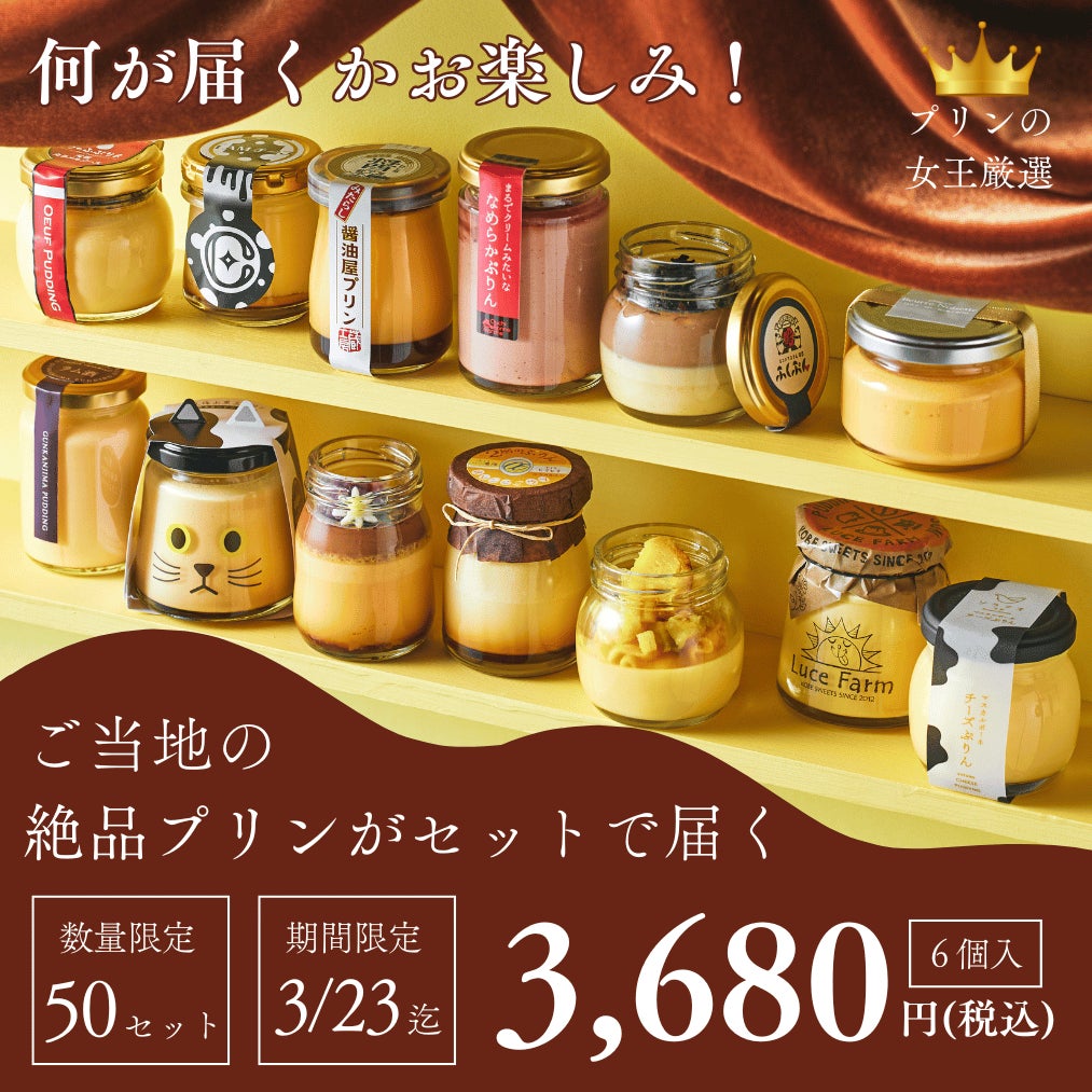 日本各地の違う店舗のプリンが6個セットになって届くドリーム企画!