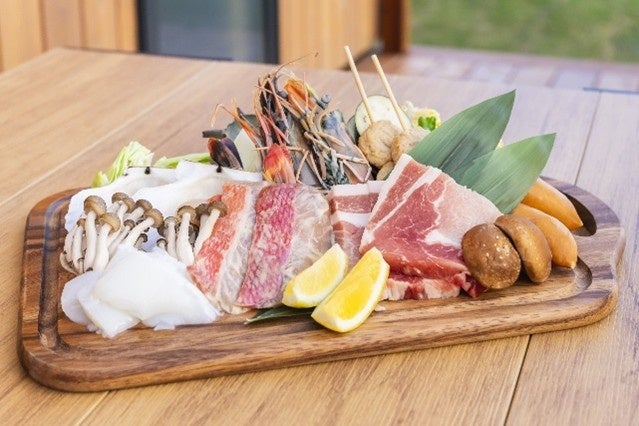 地元の鮮魚店や精肉店から仕入れた新鮮な食材を、自分たちで焼いて楽しめるヴィラBBQ。名物・金目鯛の干物や季節の野菜とともに、地酒・クラフトビールも楽しめます。
