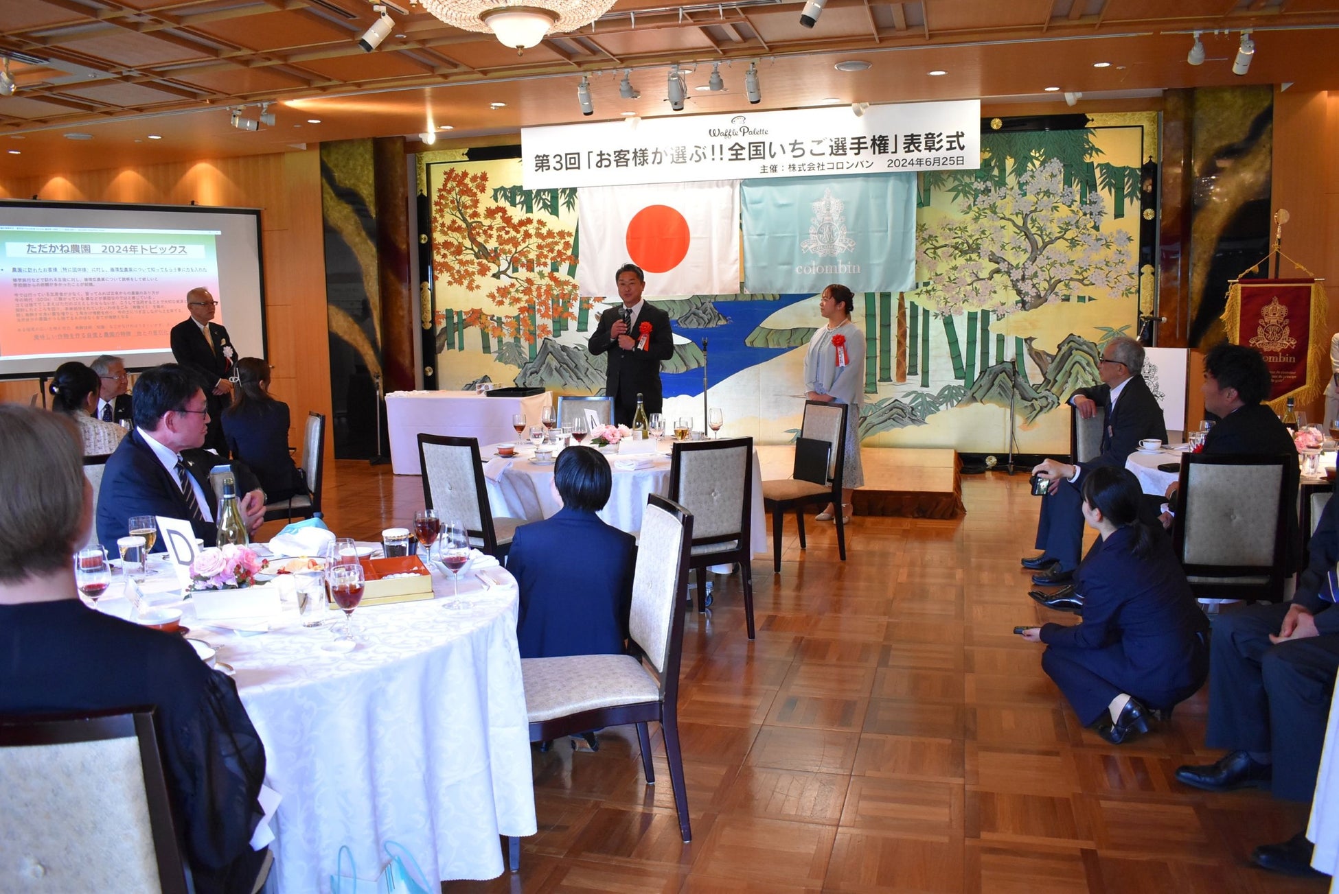 ~生産者の熱い想いが語られる会場で優勝及び上位入賞を果たしたいちごを使用した豪華スイーツをお披露目~