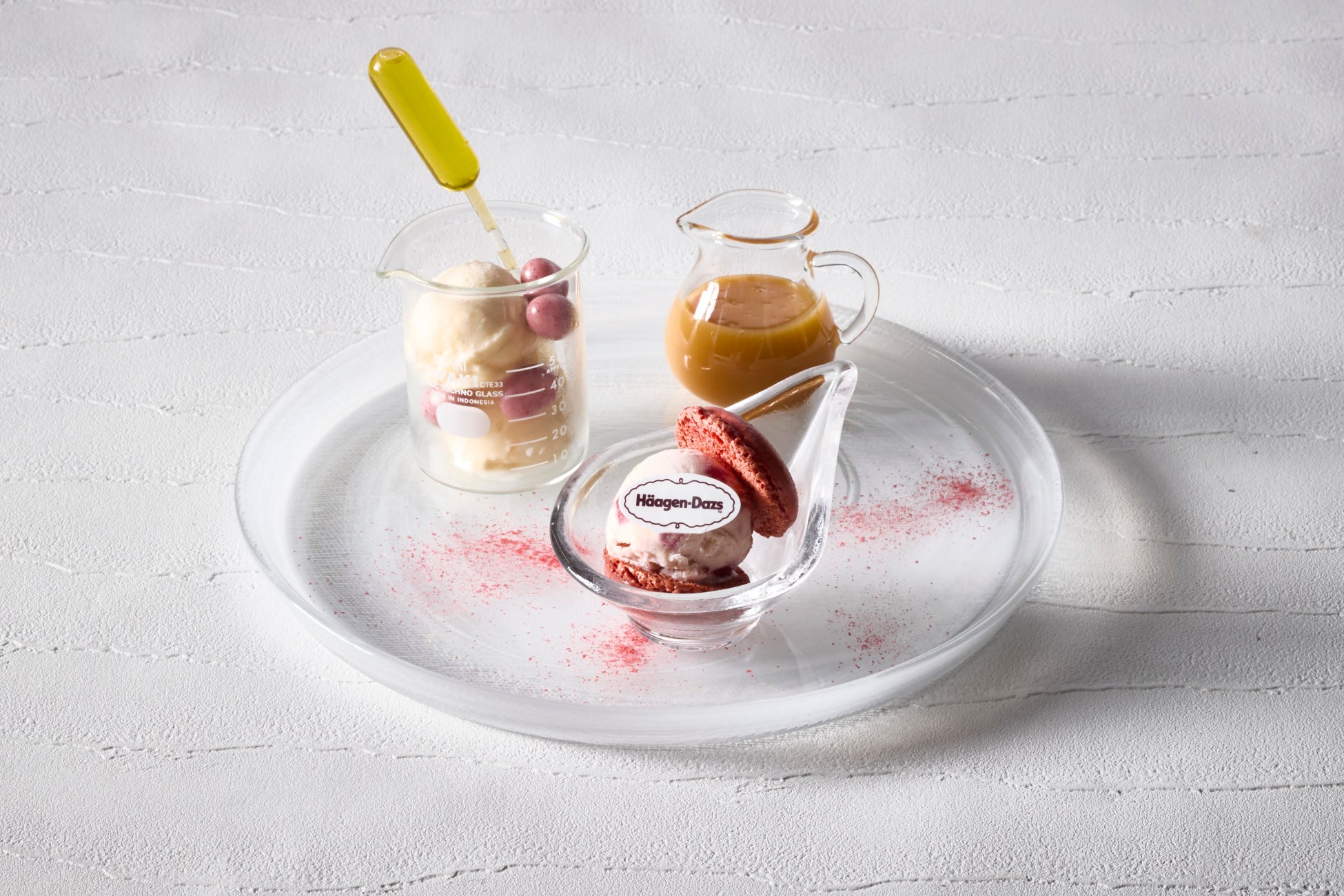 マカロン生地で挟んだアイスクリームや、ミルクジャムのソースやレモンオイルをかけて、味の変化をお好みで楽しめるハーゲンダッツタイアップのスペシャルプレートが今夏も登場。 「ストロベリー」「グリーンティー」「キャラメル」3種類のフレーバーからお選びいただけます。