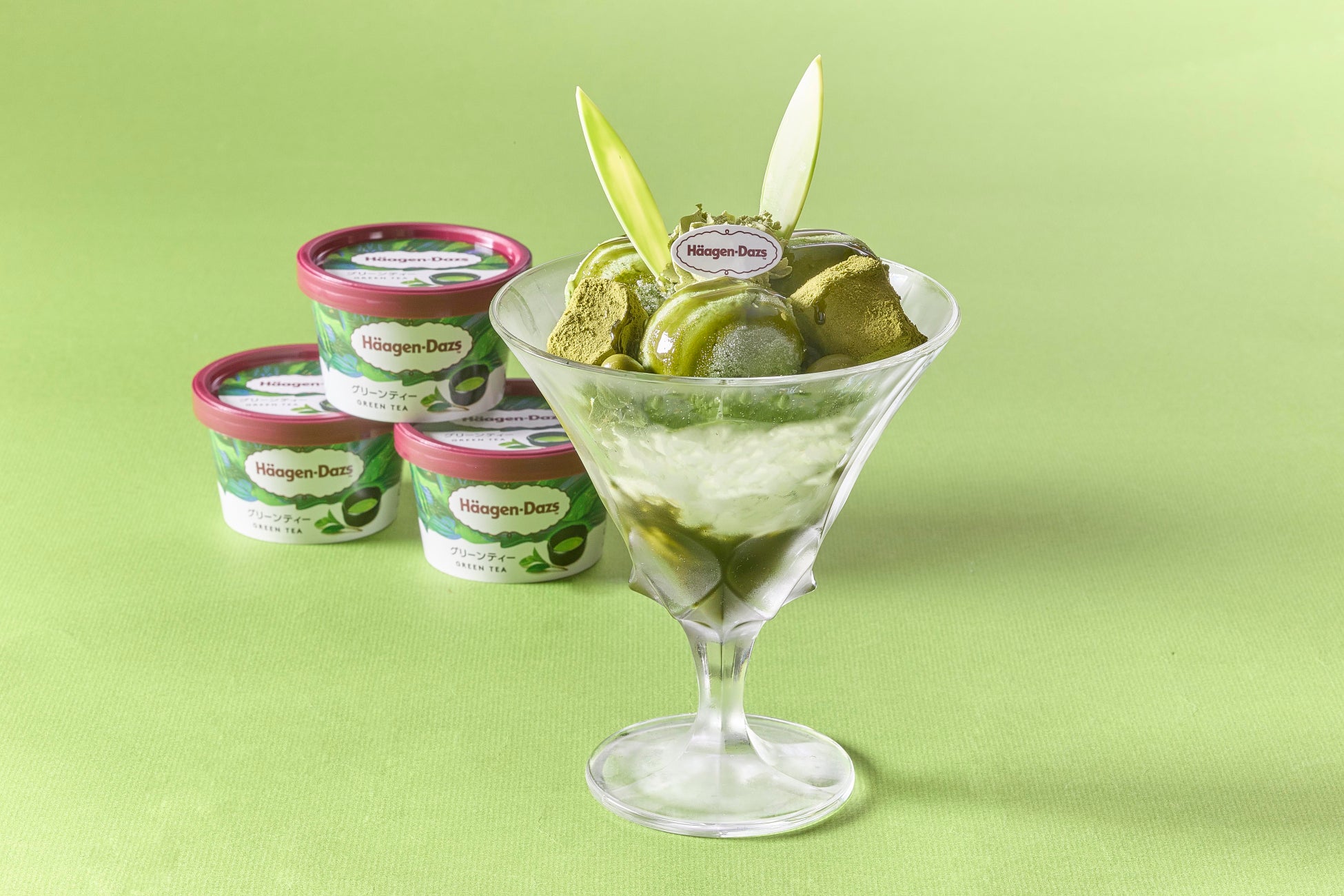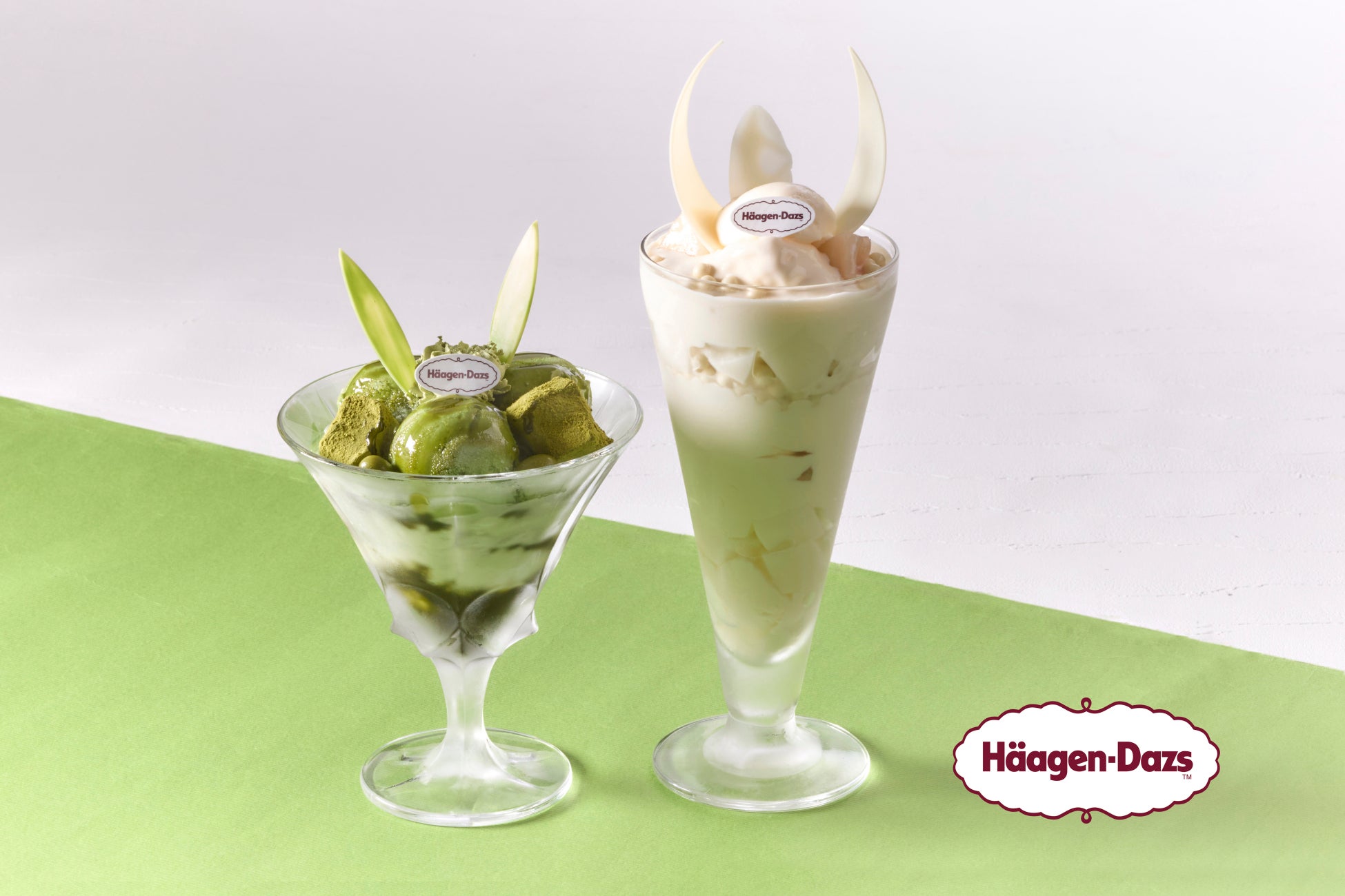 緑の風が心地よい季節に贈る、緑のパフェ。ハーゲンダッツ「グリーンティー」のアイスクリームをメインに、抹茶わらび餅やカリッとした食感の抹茶チョコレート、とろけるソースにシロップなど抹茶のさまざまな美味しさを重ねました。