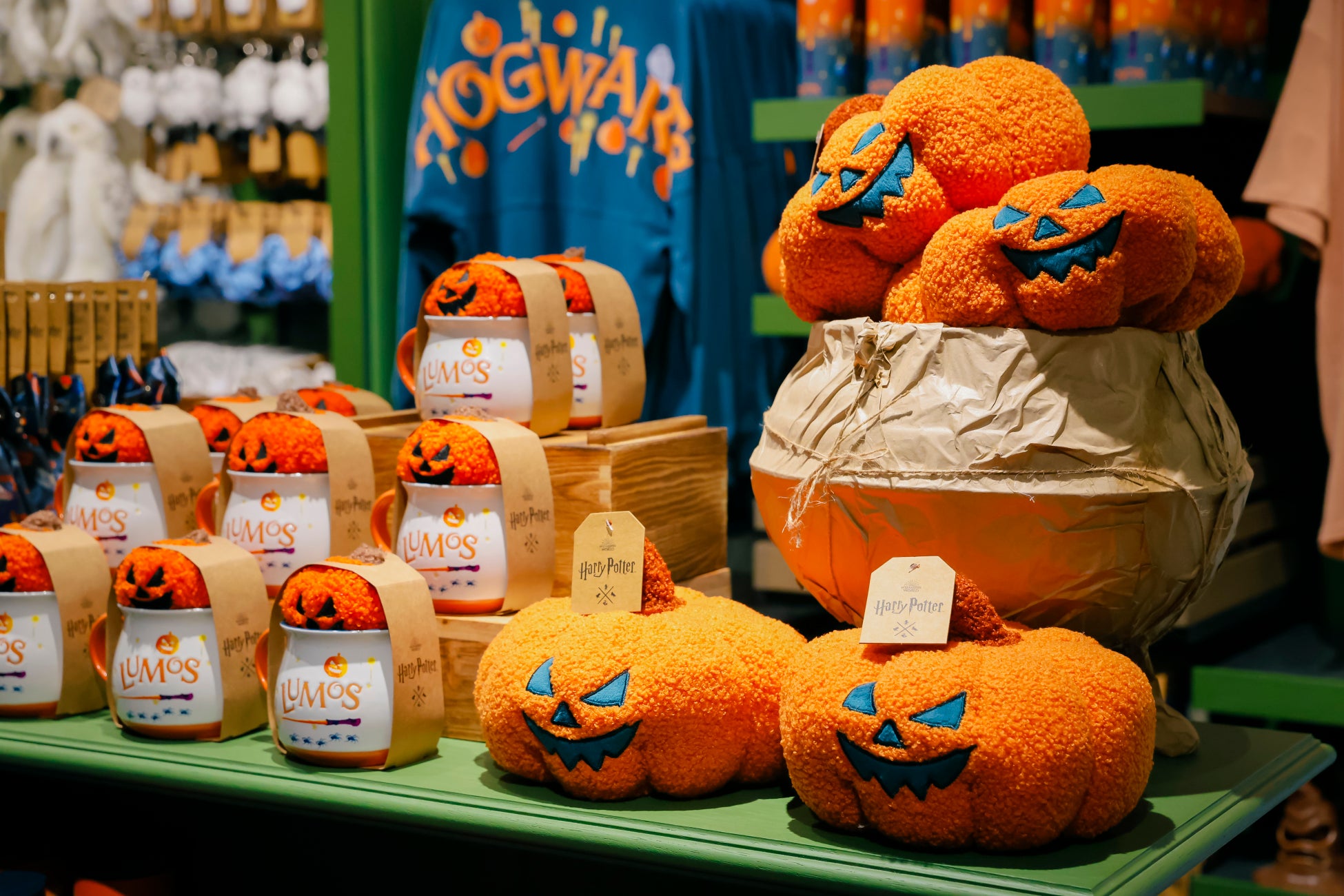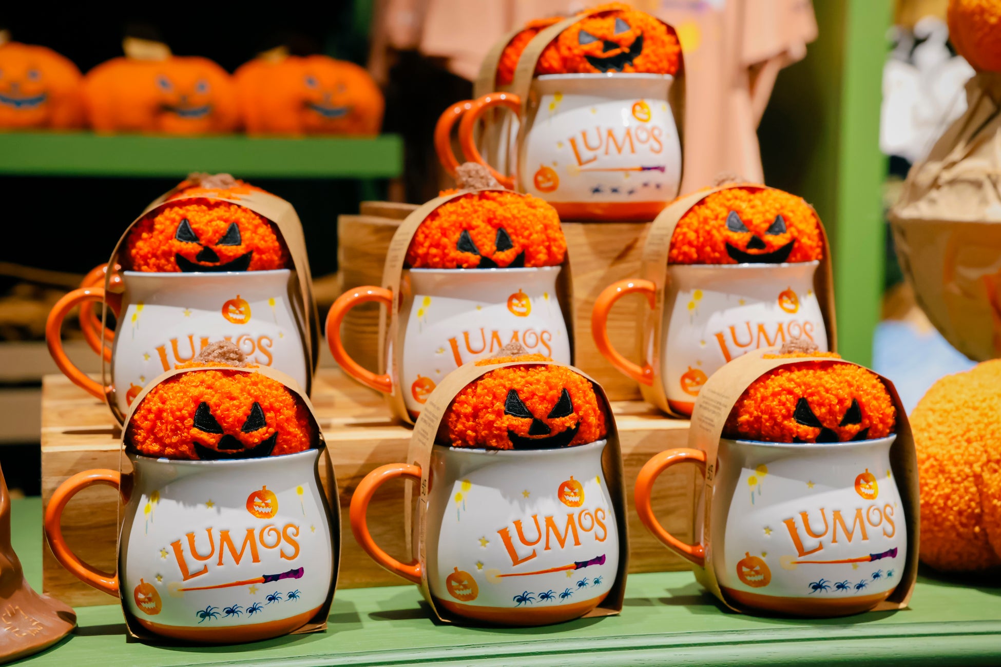 「Hogwarts」の刺繍が施された愛らしいジャック・オー・ランタンのぬいぐるみがちょこんと収まり、見た目も気持ちも華やかなマグカップ。クリームカラーのマグカップは、Lumos(ルーモス)、Expelliarmus(エクスペリアームス)などのおなじみの呪文と、魔法界をイメージしたハロウィーンモチーフが散りばめられたデザインです。ネイビーブルーの内側には飲み物を飲み干すと、底にNox(ノックス)の呪文が現れる、魔法のような仕掛け付き。