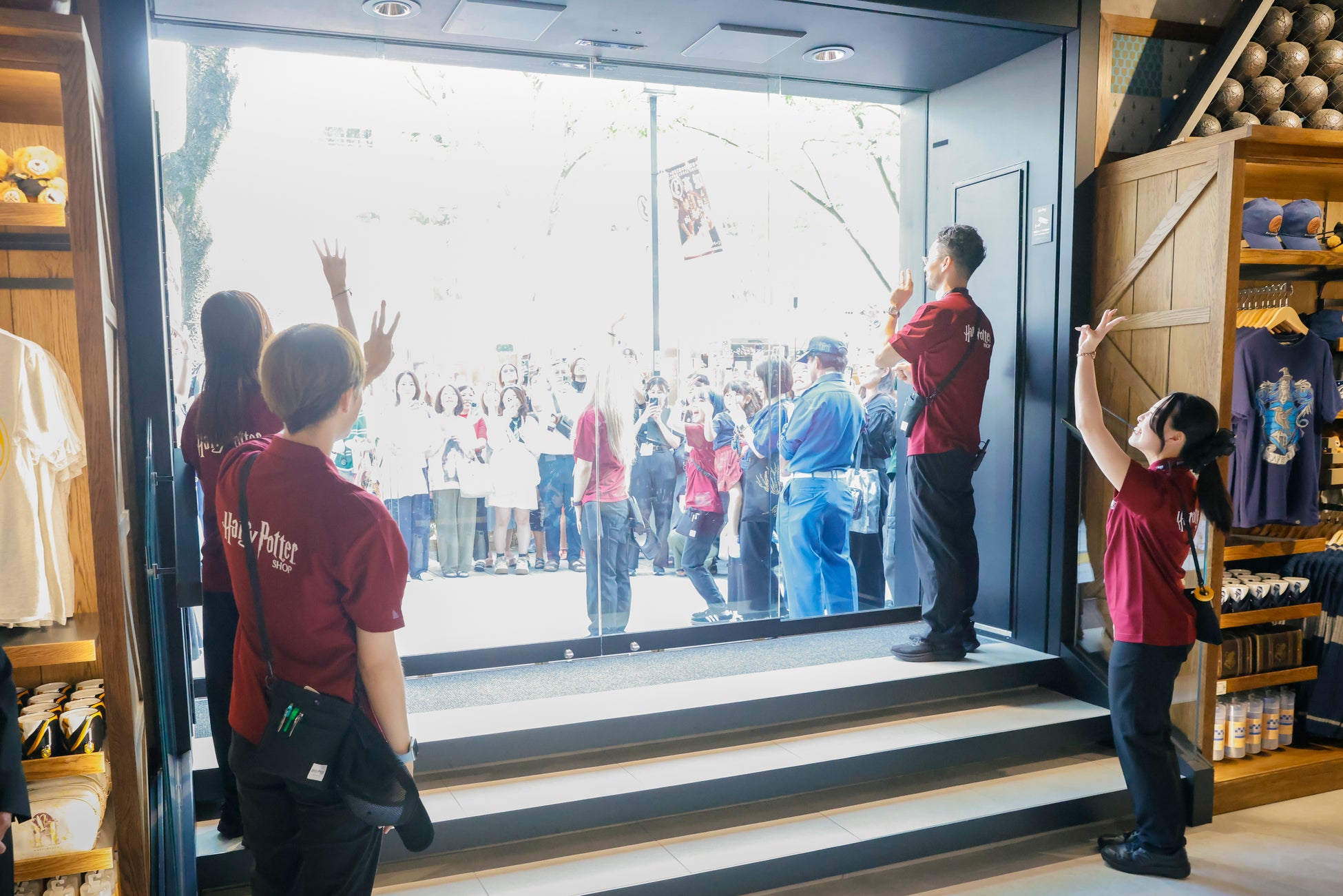 午前11時、ショップスタッフによるカウントダウンの後、ついにオープン。この日を心待ちにしていた約200人のファンをショップスタッフが笑顔と拍手で迎え入れました。初めて目にする「禁じられた森」をテーマに、緻密に再現された「ハリー・ポッター」の世界観と、魔法動物が見守り、物語の世界に迷いこんだような唯一無二の雰囲気に、ファンは歓声をあげ、興奮と笑顔に包まれたオープニングとなりました。