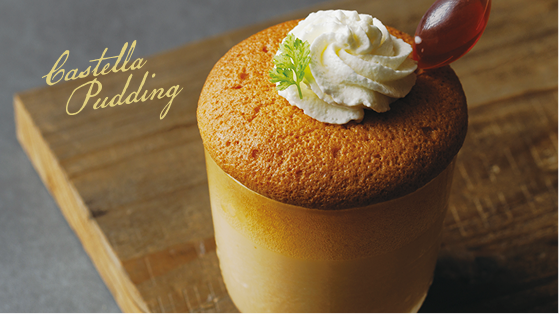ふんわりカステラと濃厚プリンの二層仕立て。別添のカラメルソースで香ばしさをプラス。