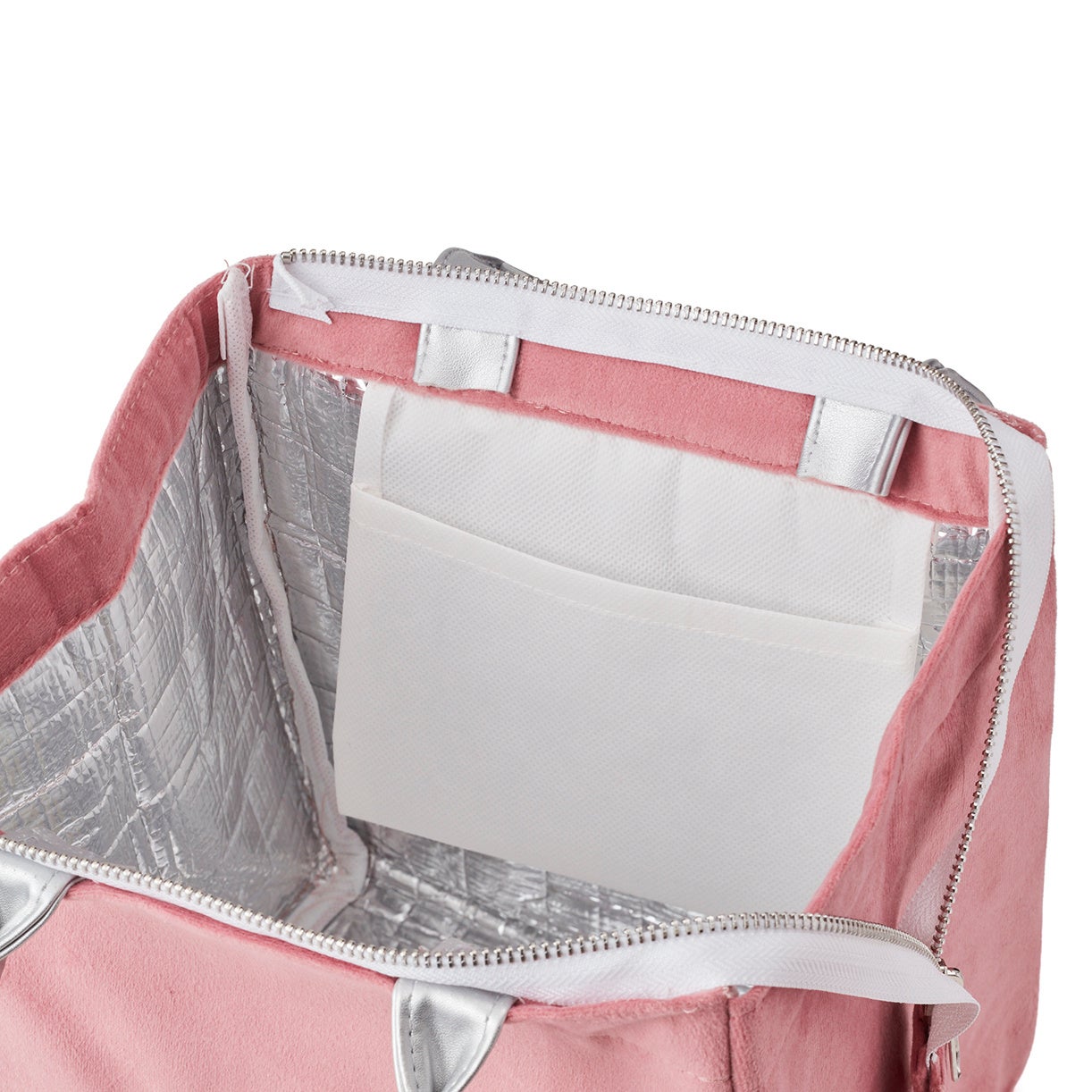 「BABBI」ウエハースに次いで人気の保冷バッグは、大きめマチが特徴で日常のお買い物にも使いやすいデザインです。カラーは、ゴールド(レギュラーサイズ)とシルバー(Lサイズ)、そして今回新色のダスティピンクが登場しました。