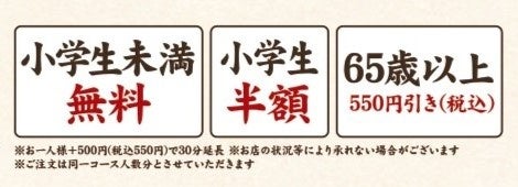 なお、牛角の食べ放題では、小学生未満は「無料」・小学生は「半額」・ 65歳以上は「税込550円引き」と、ご家族でも利用しやすい価格設定を採用しています。今回の新コースでも同様に割引が適用され、幅広い世代のお客様に、より気軽に焼肉をお楽しみいただけます。