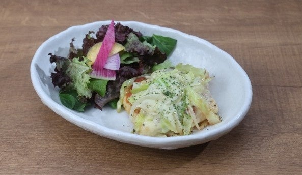 直江商店の「おとうふかまぼこ」にチーズを合わせ、香ばしく焼き上げた一品。 豆腐のやさしい甘みと魚の旨味に、とろけるチーズのコクが重なり合う、素材の 魅力を活かした味わいです。