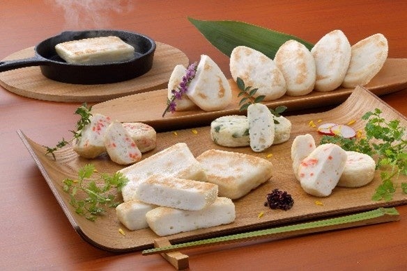 【宮城県/直江商店】 株式会社直江商店は、宮城県塩竈市に拠点を置く水産練り製品の専門メー カーです。創業以来伝統の技を守りながら、素材本来の味わいを大切にした製 法を継承し、時代に合わせた最新の工程も取り入れながら製品づくりを行って います。代表的な「おとうふかまぼこ」は、大豆と白身魚のすり身を丁寧に練り合 わせたふっくらとした食感と豊かな味わいが特長です。大豆の風味と魚の旨味が 絶妙に調和し、和食だけでなく洋・中の様々な料理にも活用できる汎用性の 高さも魅力となっています。さらに、「おとうふかまぼこ 笹」や「小丸生姜」「お好み 揚げ」「揚げかま」など多彩なラインアップを展開しています。