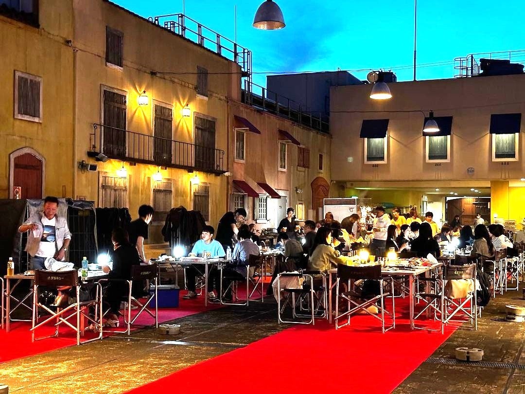 テーブル40卓、約160席を用意。テーブルの中央に炭火のコンロを用意。
