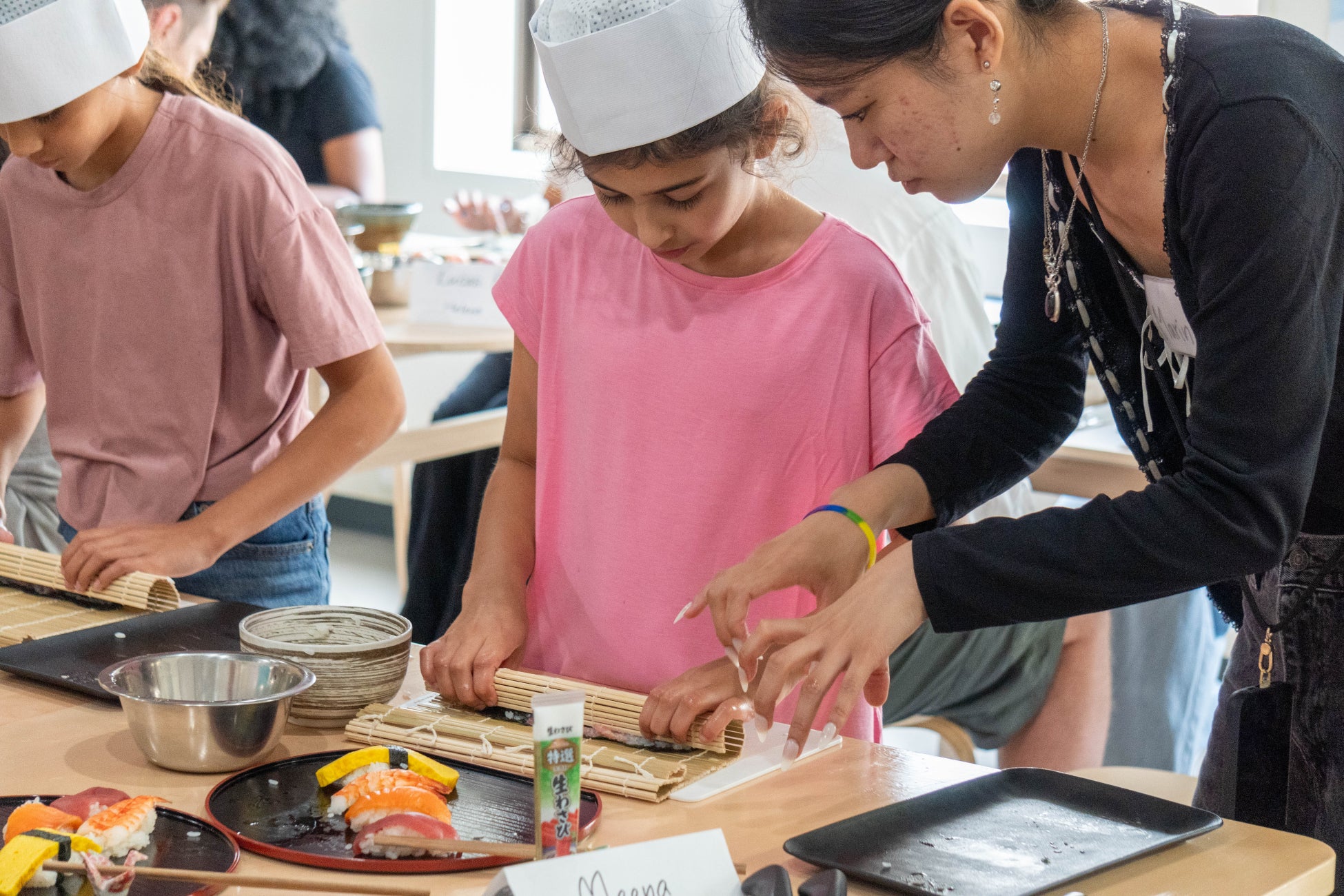 ・クラスでは世界中から集まった人たちと出会い、寿司や細巻きの作り方を学んだ。
