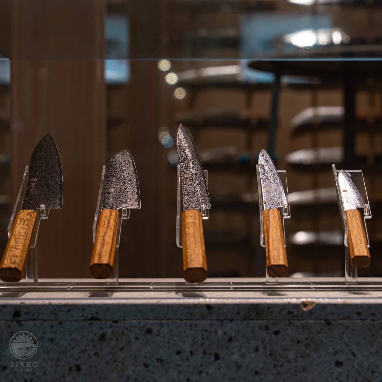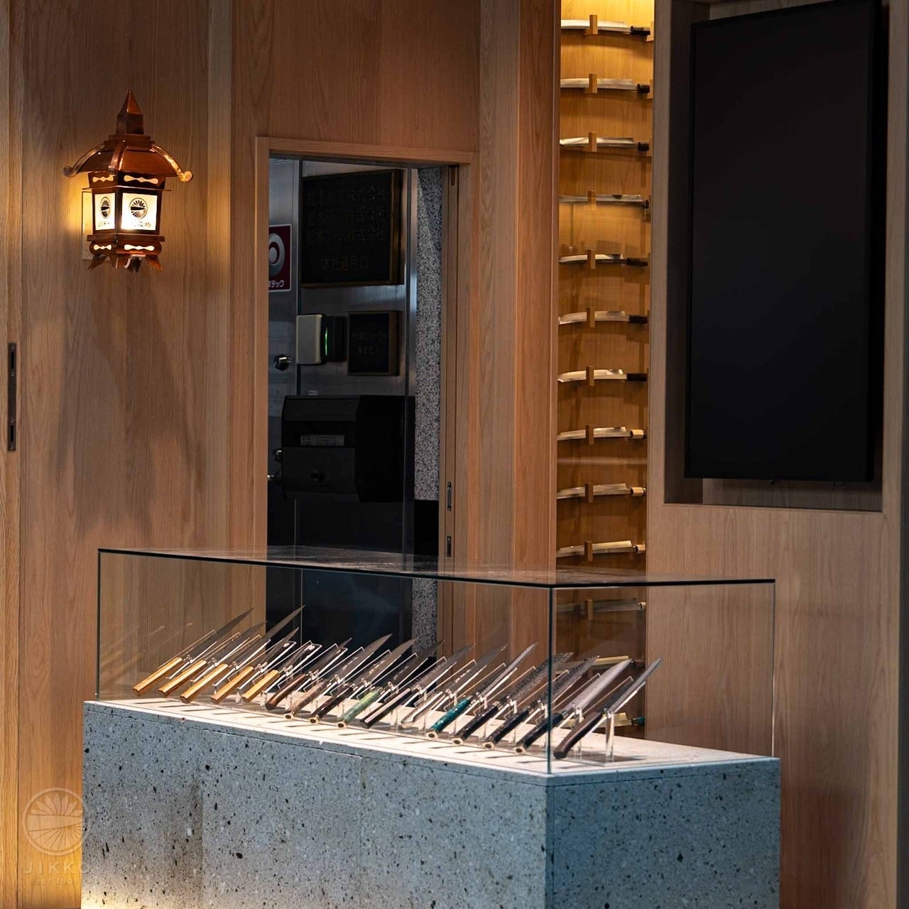 新店の最大の特徴は、そのコンパクトなサイズです。わずか4畳半の小さな店舗ながらも、プロフェッショナルの料理人にご満足いただける包丁を122本、取り揃えております。切れ味抜群の包丁はもちろん、専門的なカスタマイズにも対応可能な包丁専門店ならではのサービスをご提供いたします。