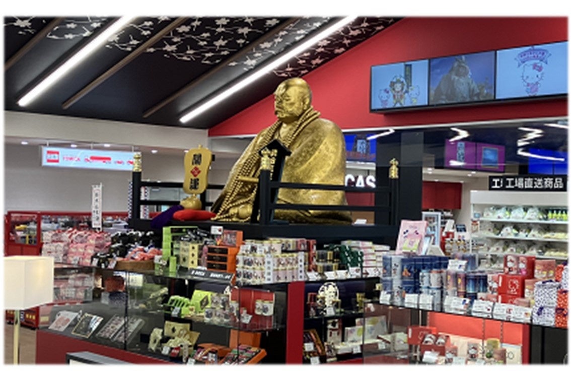 今回のリニューアルでは、店舗内に山梨の花「フジザクラ」をモチーフとしてあしらい、水晶を使った貴(き)石画(せきが)の展示、信玄公の銅像など、山梨を視覚で感じる装飾としました。味覚では、山梨の郷土料理や地域を代表するお土産などをご用意し、お客さまをお迎えします。