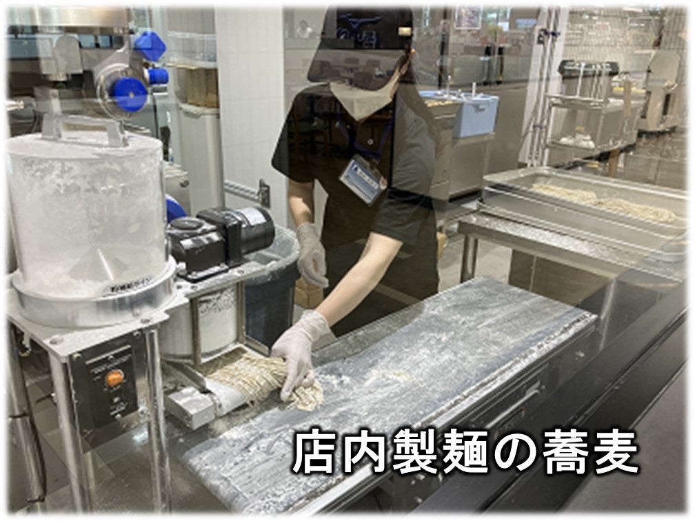 フードコートは広々と128席をご用意し、4つの店舗「ほうとう・うどんの“麺工房”」、「ラーメン・中華の“ラーメン大皇”」、「丼・定食の“定食亭”」、「そば・天ぷらの“蕎麦庄”」を展開します。山梨の郷土料理“ほうとう”は、国産小麦を使用した自家製麺と山梨県産のカボチャを使った逸品です。ラーメンは、自家製麺と煮込んだホルモンが入ったホルモンラーメンをはじめ、サンマーメンや広東麺などボリューム感のあるメニューをご用意しています。蕎麦コーナーでは、店舗内で打った蕎麦と揚げたての天ぷらのほか、地元山梨県産のお米を使用した「手作りおにぎり」をご用意しています。