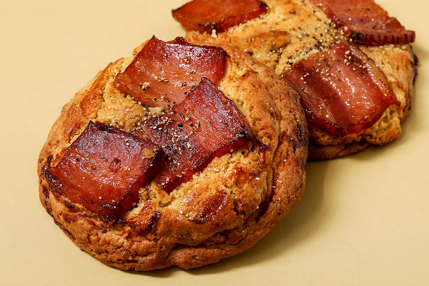 食べ応えのあるベーコンをジュワッと生地に染みたメイプル風味シロップとくるみの食感が引き立てる。