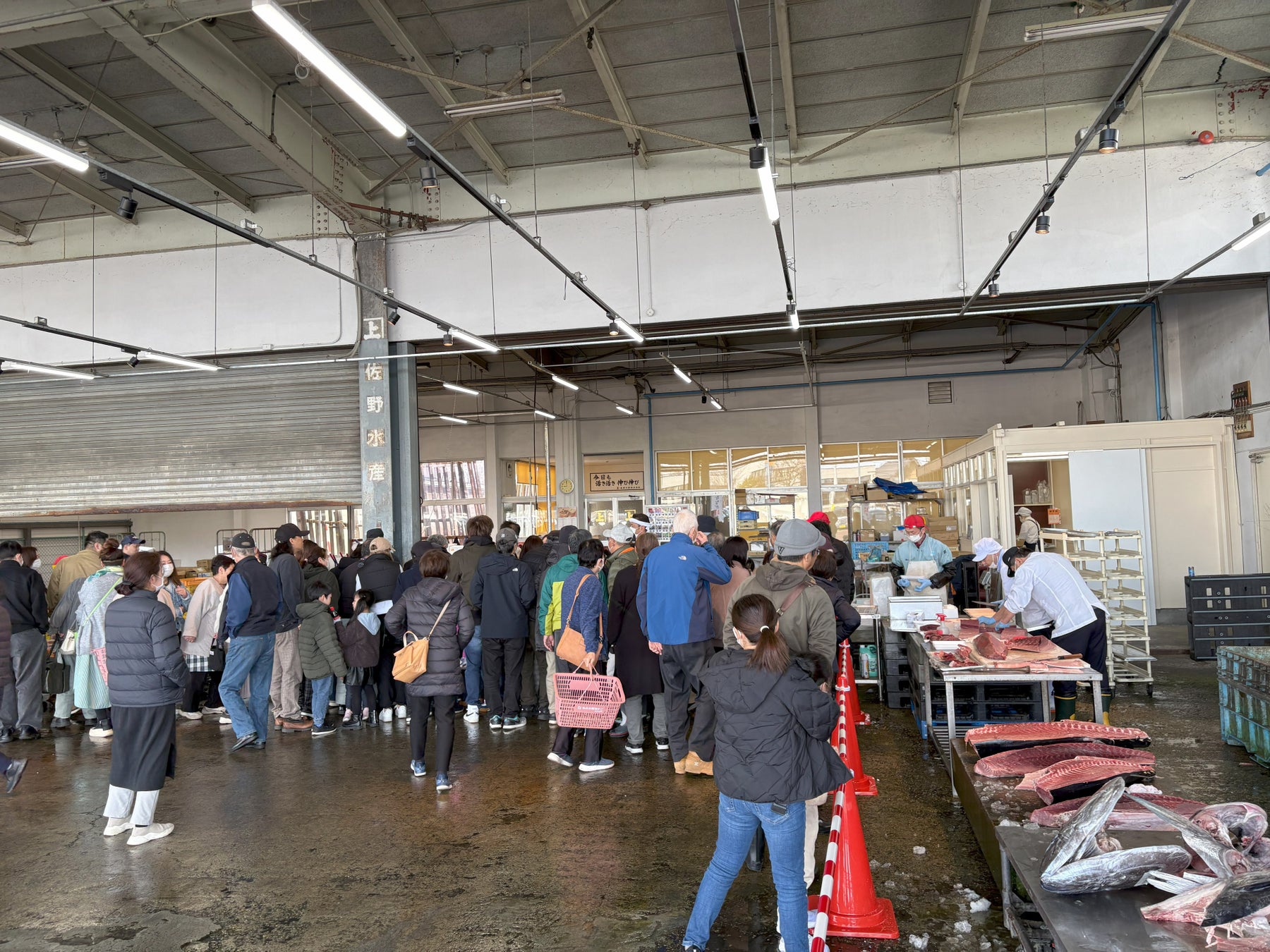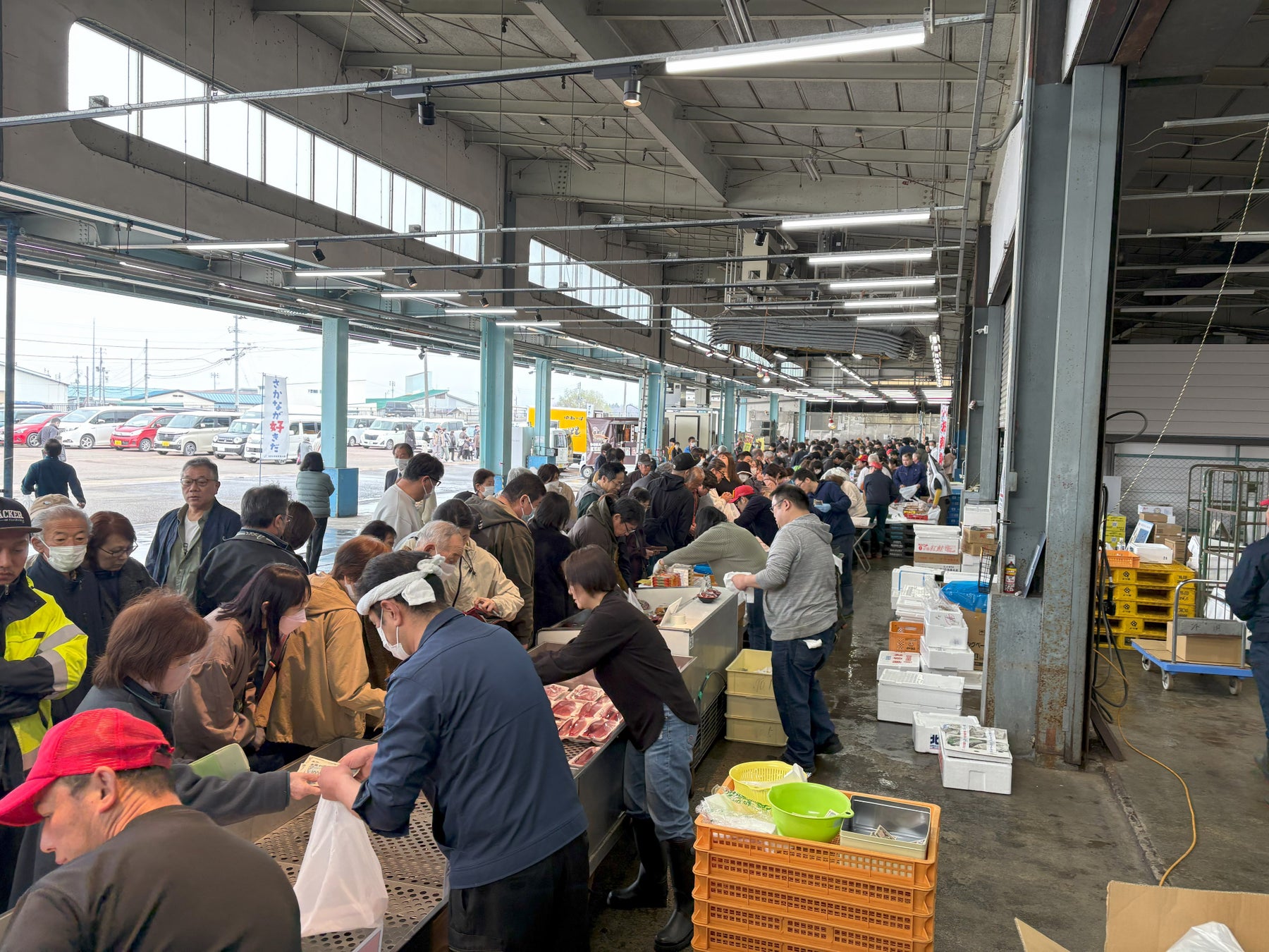 令和7年2月22日にスタートした「米沢食の市場 土曜朝市」は、初日から多くの方にご来場いただき、大変な賑わいを見せています!迫力ある生マグロの解体ショーは、見どころのひとつです。