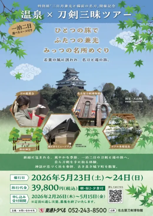 本物の刀剣に触れ、天然温泉でゆったり過ごすバスツアー。明智兼光・三日...