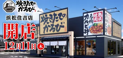 0 ニュース速報 / 食堂 / 東海エリア / 静岡エリア / 焼き肉 / 最新ニュース(全国編) / 全国グルメ / 新店舗オープン情報! 2025年12月4日 by ensen-gourmet · Published 2025年12月4日 【焼きたてのかるび】12月11日(木)静岡県浜松市に35店舗目をオープン! 株式会社物語コーポレーション(本社:愛知県豊橋市/代表取締役社長:加...